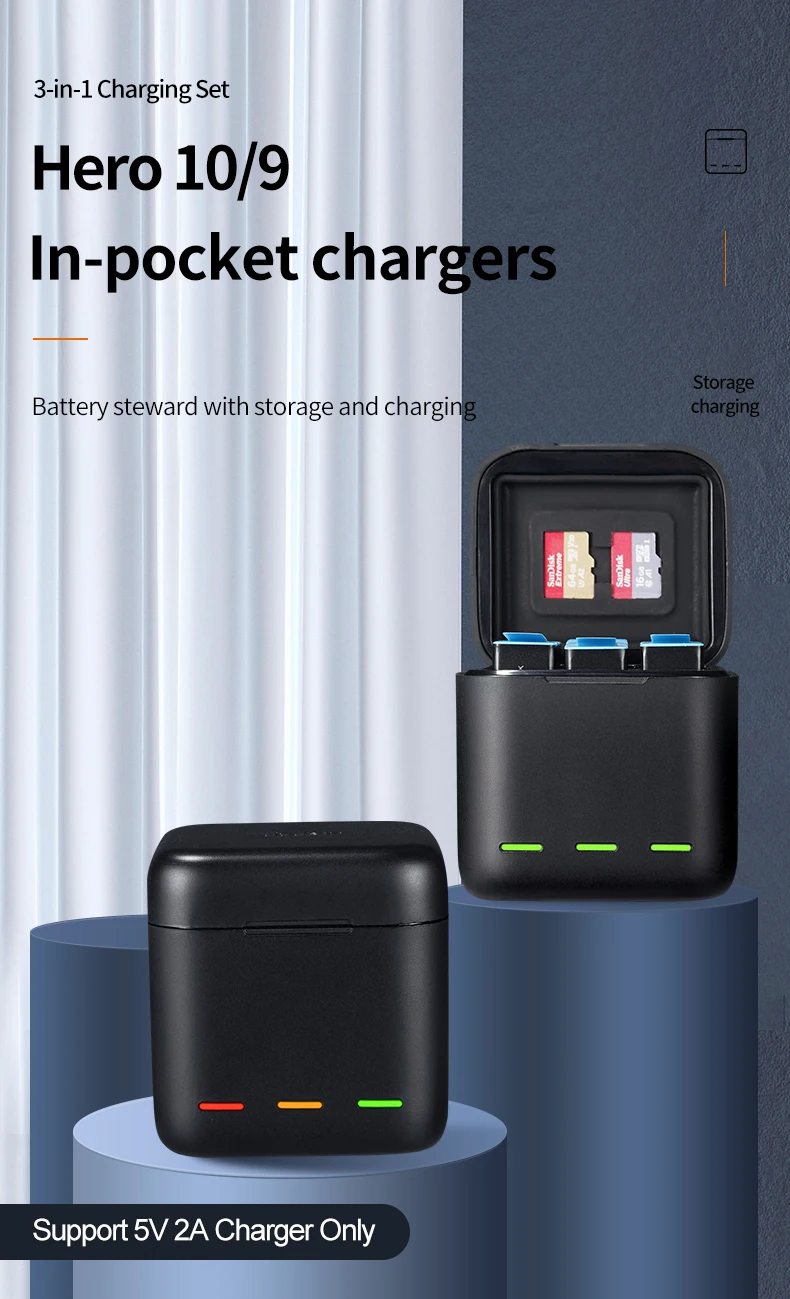 1. Зарядное устройство от квадратного до круглого, более удобное на ощупь, чем детская кожа.2. Девять защиты, использование с уверенностью, аккумулятор и зарядное устройство безопасны.3. Три аккумулятора одновременно заряжаются и хранят, вмещают до двух tf-карт и трех батарей.4.2.4 большого тока, Полная зарядка занимает всего лишь 2,5 h.5. Силиконовый слот для карт, сохраняя при этом лучшую защиту.6. Магнитное открытие и закрытие, покрытие использует магнитное, простое, надежное управление.7. Противоскользящий силиконовый коврик, используйте в нижней части, чтобы избежать падения, больше безопасности.8. Интерфейс Type-c, поддержка передних и обратных вставок, не требуется адаптация кабелей.9. Четко отображенный, уточняющий состояние батареи, постоянно включается зеленый светильник, близкий к полноте желтый светильник остается на синем светильник дышит, Зарядка красный светильник остается на синем светильник дышит, В режиме ожидания всегда включен синий светильник.10. Легко помещается в рюкзак, не занимает много места.