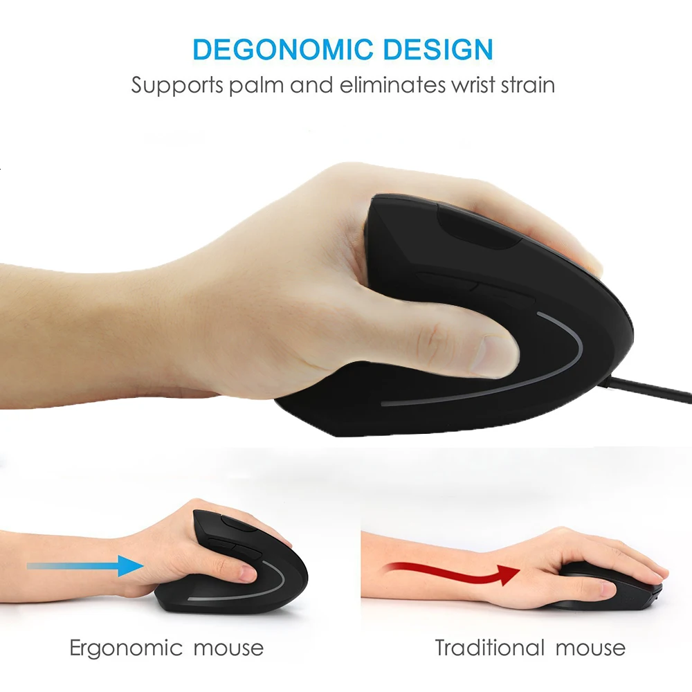 Эта Вертикальная оптическая мышь эргономично разработана, чтобы облегчить нагрузку на запястья с уютным комфортным мизинчивым пальцем и большим пальцем и полной контурной формой бесшовной поддержки ладони, здоровой и эффективной.