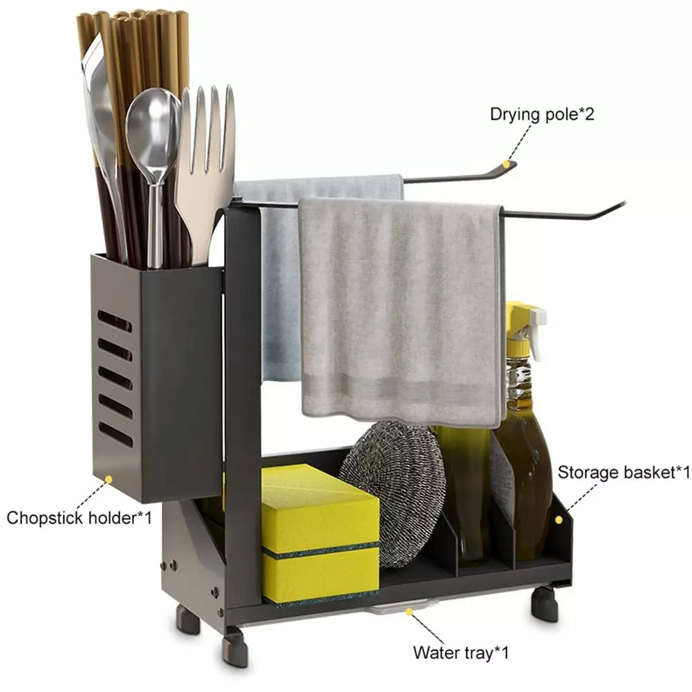 Многофункциональная полка для хранения на кухонной раковине, нескользящая стойка из нержавеющей стали для хранения тряпки, губки, сливной кронштейн с поддоном для слива