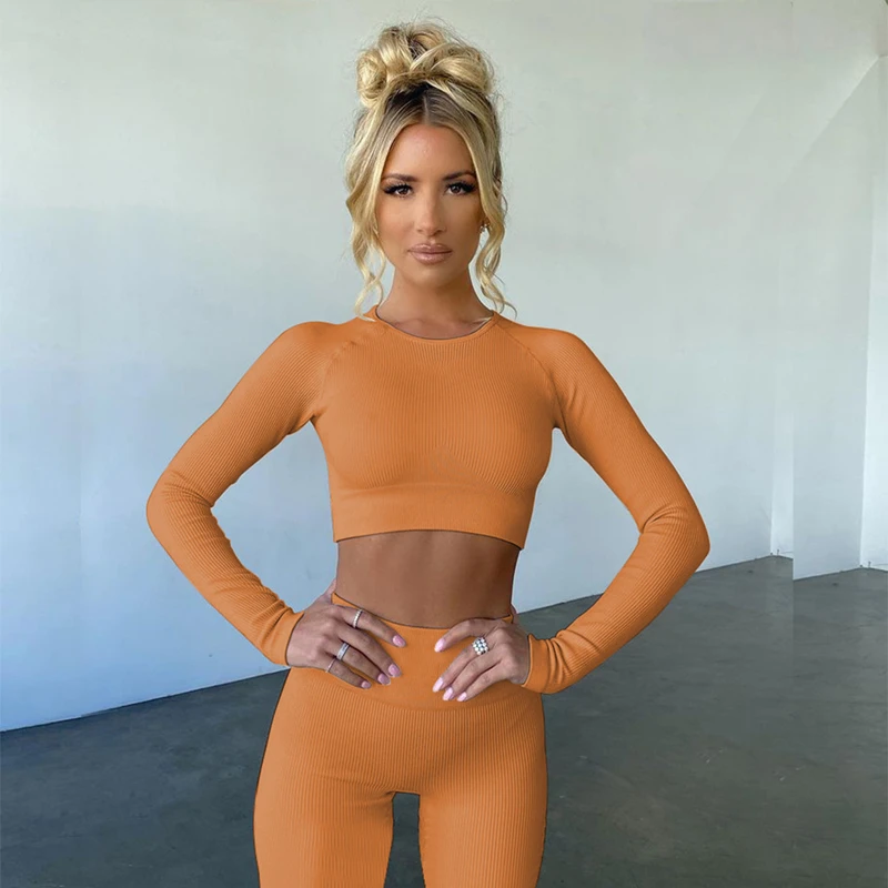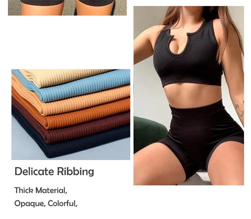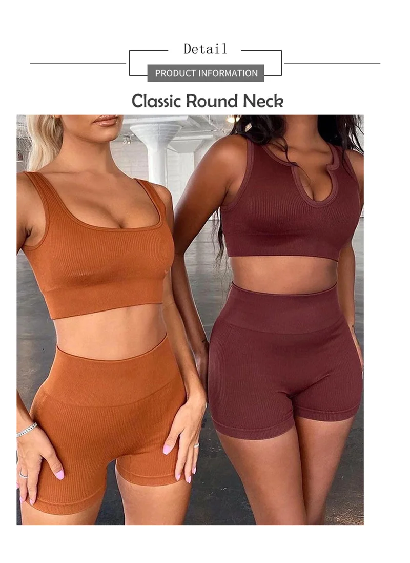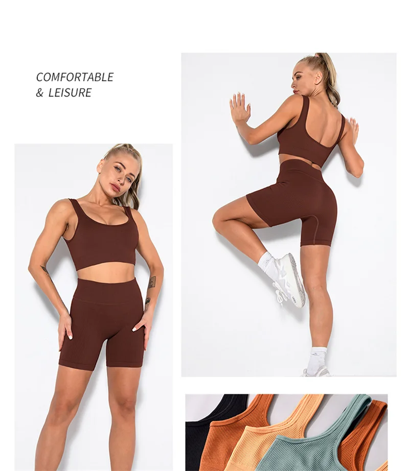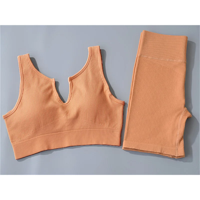 Женский спортивный комплект из 2 предметов, бесшовный укороченный топ и шорты с лентами