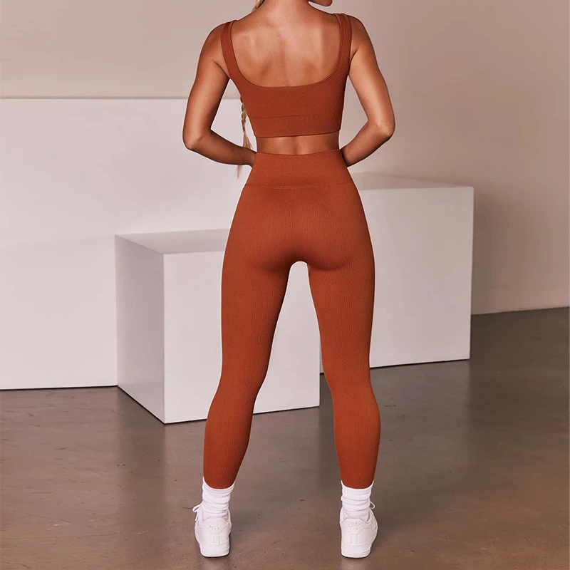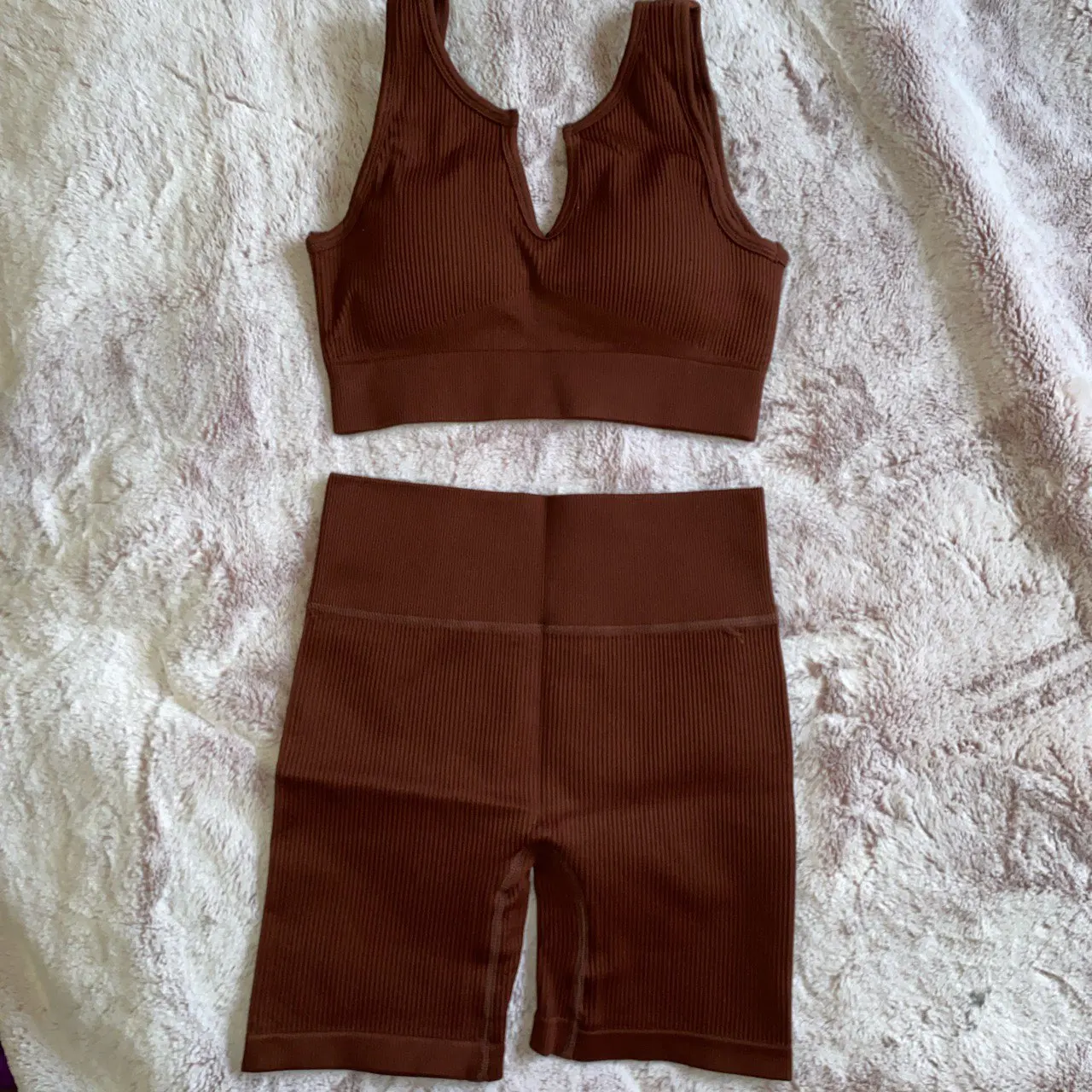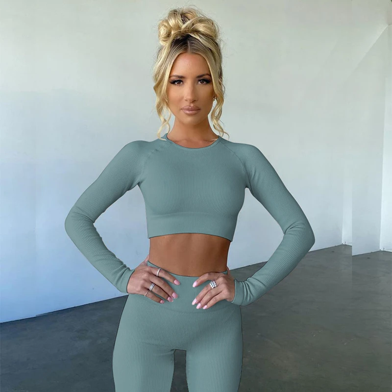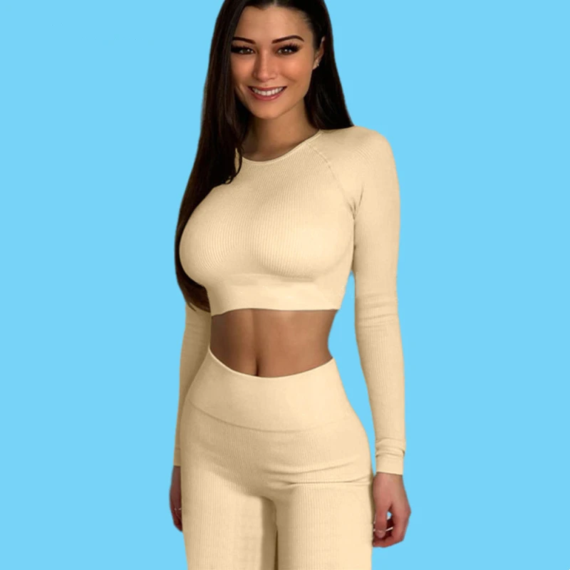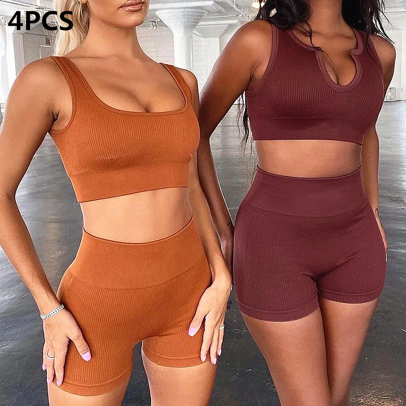 Женский спортивный комплект из 2 предметов, бесшовный укороченный топ и шорты с лентами
