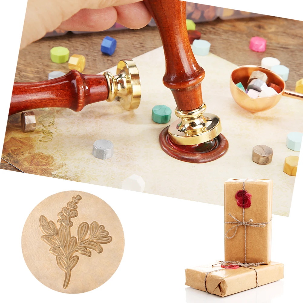 Восковая печать в стиле ретро с узором растений, деревянная ручка, восковая печать, печать для самостоятельного изготовления конвертов, свадебных декоративных подарков, инструмент для хобби