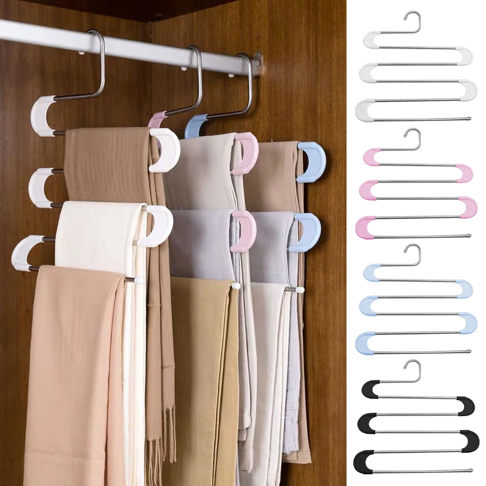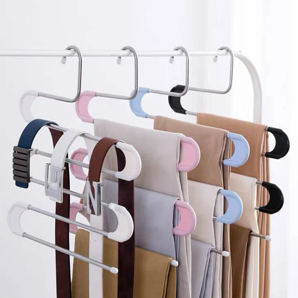 5 в 1 вешалки для одежды и брюк стеллаж для хранения регулируемые брюки хранения шкаф с полками Органайзер из нержавеющей стали аккуратные вешалка для одежды вешалка