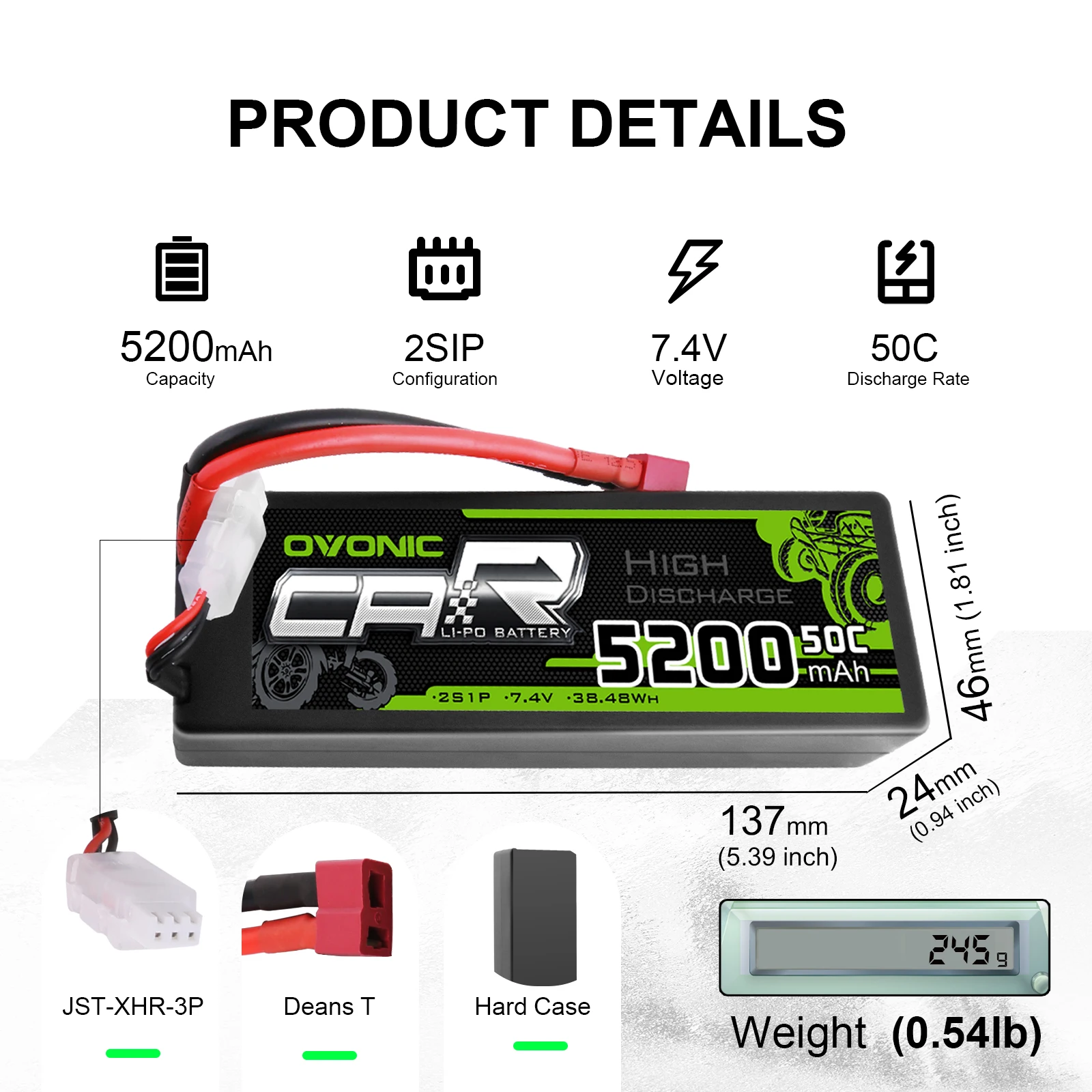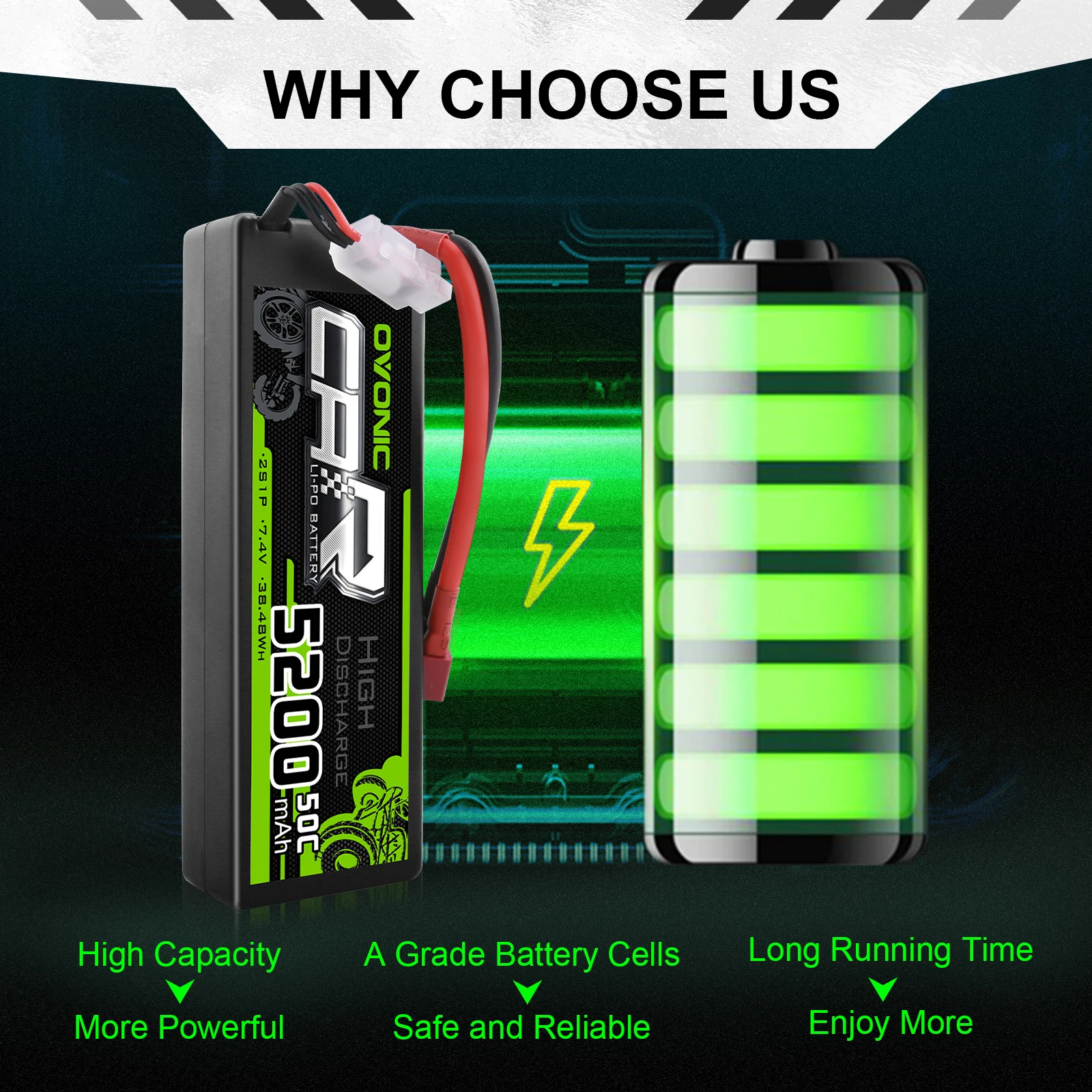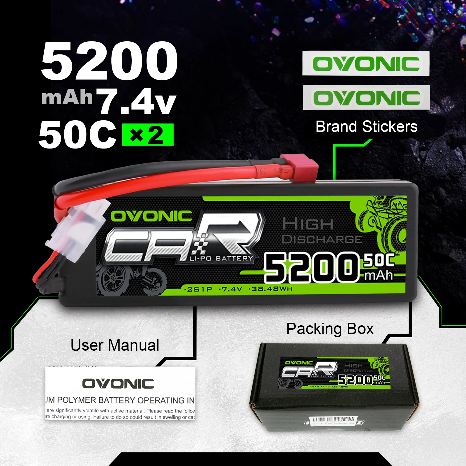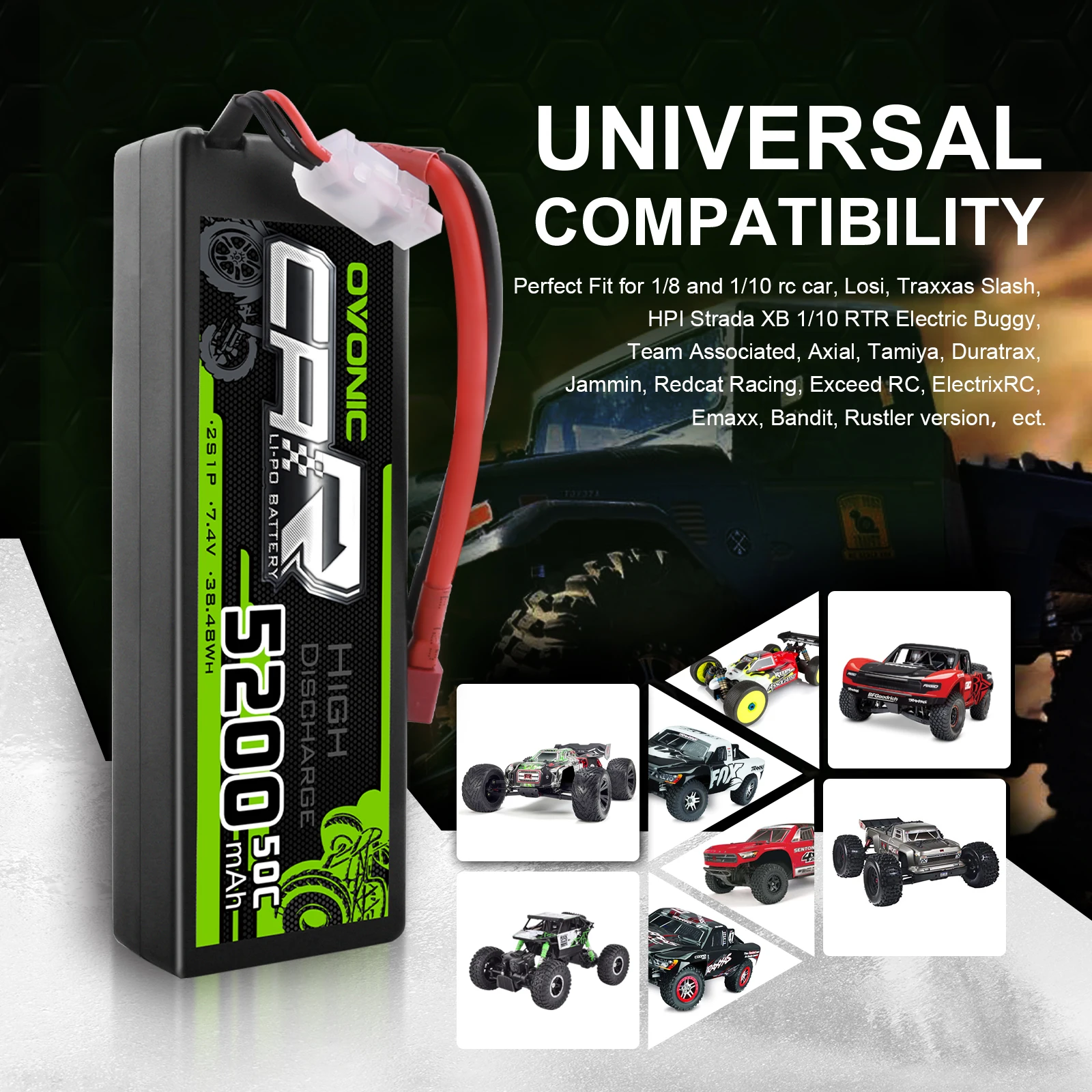 OVONIC 5200 мАч 7,4 В 2S 50C Lipo батарея специально разработана для профессиональных весов 1/10 и 1/8 масштаб Радиоуправляемый автомобиль для хобби моделей, таких как: Emaxx, Bandit, Rustler версия, Losi, команда И т. Д.-Он также может быть использован для RC самолета, RC вертолета, RC лодки, дрона, FPV. -Для RC батареи, только если напряжение, размер и вилка совпадают, то он подойдет.