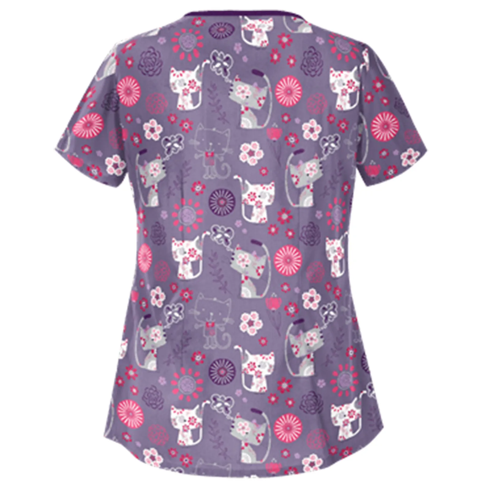 Номер моделиUniforme Enfermera Women Short Sleeve Pocket V-neck Printing Tops Nurs
