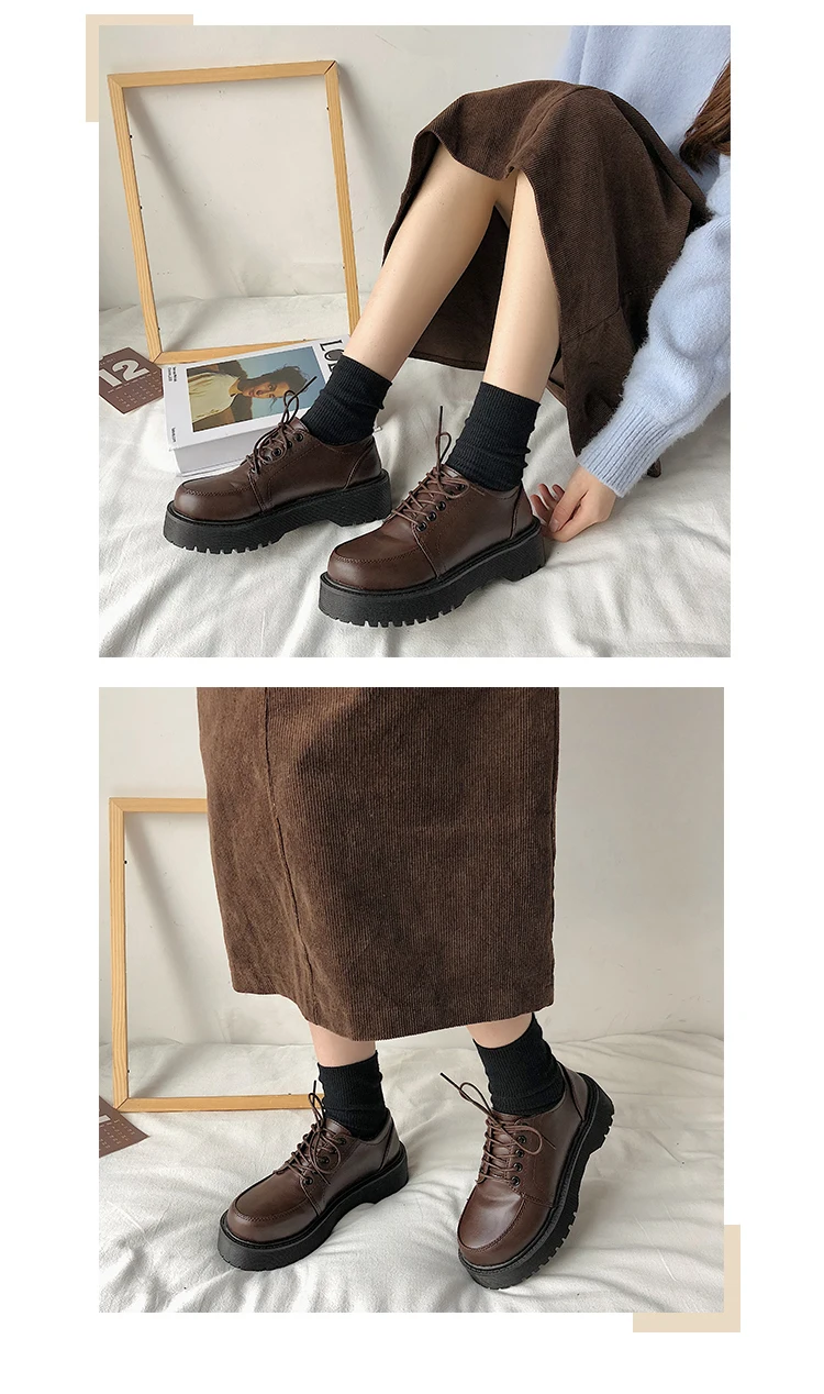 Женские туфли-оксфорды на плоской платформе, черные кожаные туфли на шнуровке, с вышивкой, с круглым носком, 8901N, весна-осень