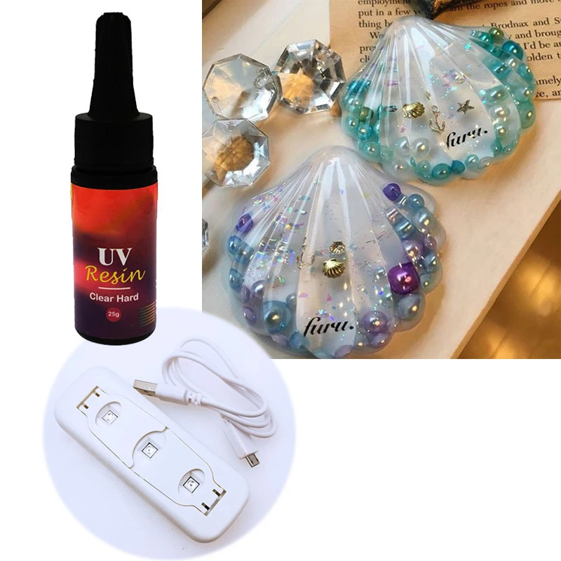 Набор для изготовления украшений сделай сам, прозрачная твердая УФ-смола и УФ-лампа для быстрой отверждения ювелирных изделий, для рукоделия, эпоксидная смола