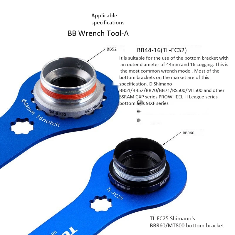 Многофункциональный ключ ВВ с центральным валом, алюминиевый сплав/прецизионный зазор/полное закрытие замкнутой петли/без дэ до центрального валаТермообработка T6, обработка ЧПУ, абразивная полировка, анодированиеКольцевая крышка шатуна инструмент гаечный ключ с кольцом крышка шатуна инструмент может быть рассеянное кольцо крышка шатунаBB гаечный ключ-A:TL-FC25 использования: для Shimano BBR60/MT800 Нижний Кронштейн (BB)BB44-16(TL-FC32) Использование:1, для ShimanoBB51/BB52/BB70/BB71/RS500/MT5002,SRAM GXP3,PROWHEEL H4,IXFBB гаечный ключ-B:TL-FC24 использования: для Shimano BBR9100/XTR/DA Нижний Кронштейн (BB)BB46-24 (подходит) Использование: SRAM DUBЦвет: синийМатериал: алюминиевый сплавРазмер: 250x64xmПосылка:2 * BB гаечный ключ (BB44-16,BB46-24)Только вышеуказанная посылка, другие товары не включены.Примечание: светильник и различные дисплеи могут привести к тому, что цвет товара на картинке немного отличается от реального. Допускается погрешность в измерениях +/- 1-3 см.