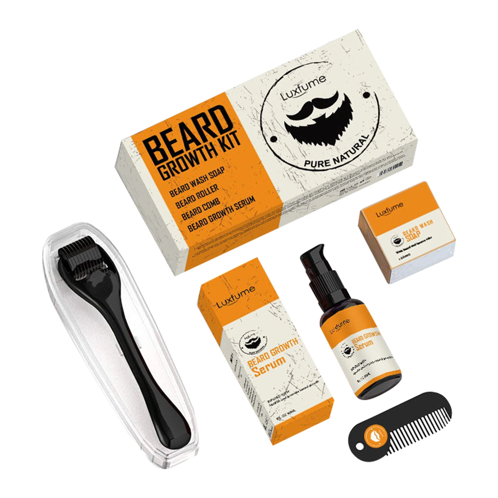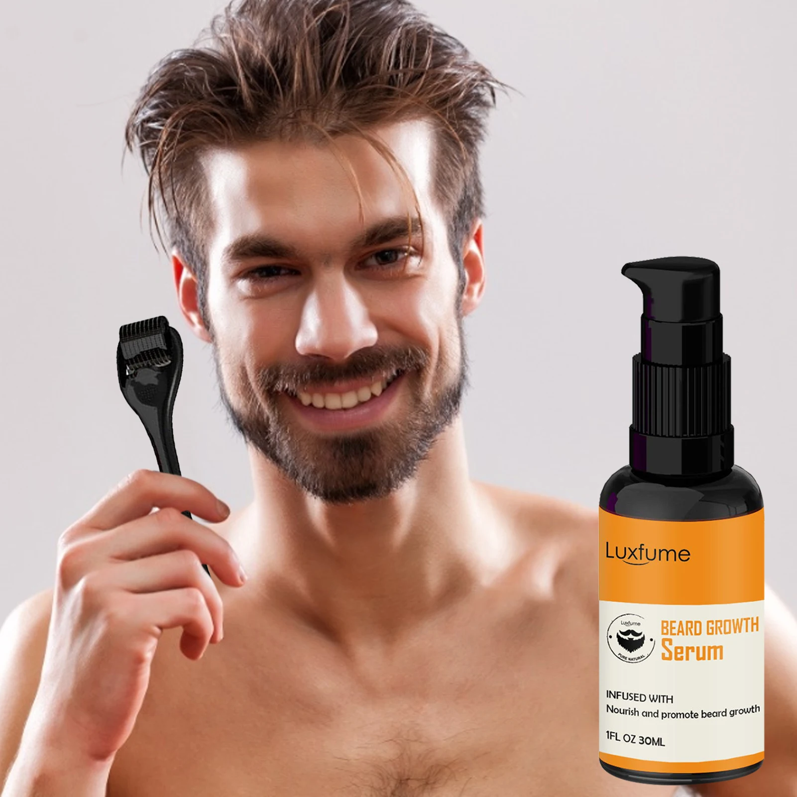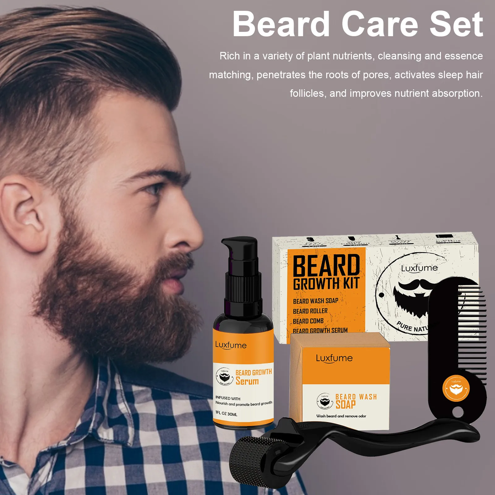 4 шт. набор для роста бороды для мужчин (30 мл эссенция для бороды, крем для чистки бороды, расческа для бороды, массажный ролик) Усилитель роста бороды, более толстое масло
