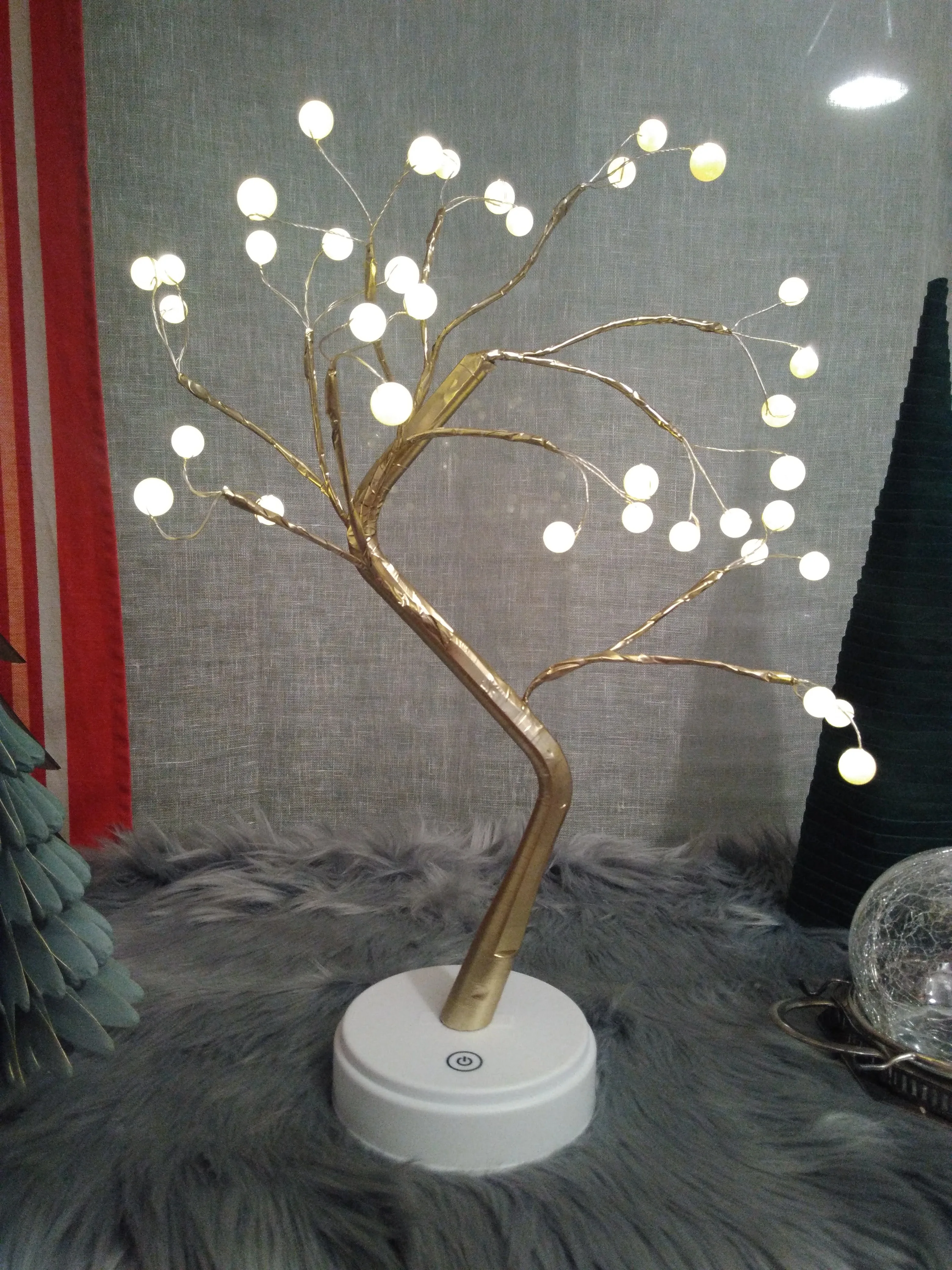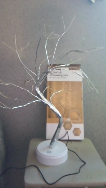 Joli élément de décoration avec possibilité d'orienter les branches comme on le souhaite. J'ai préféré mettre des piles pour ne pas avoir le cordon livré à la vue. Bouton d'allumage tactile. Article bien emballé et protégé et livraison rapide. Je recommande le vendeur.