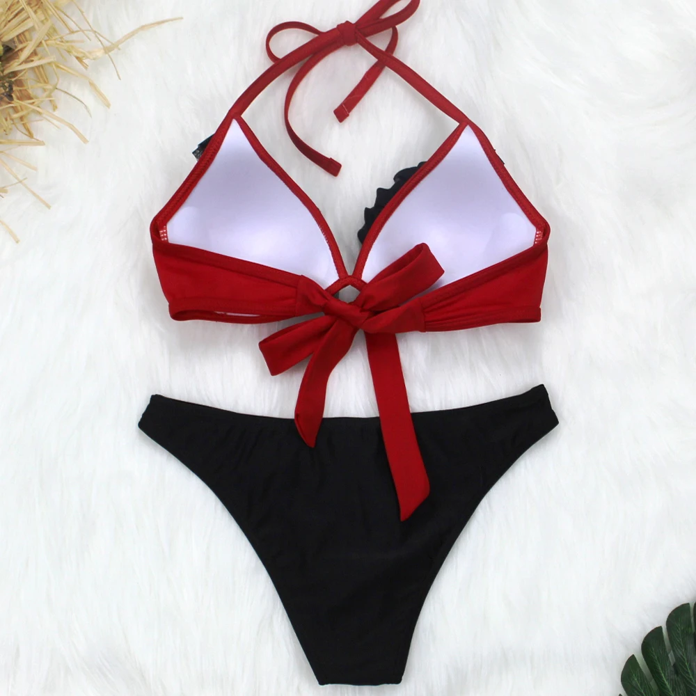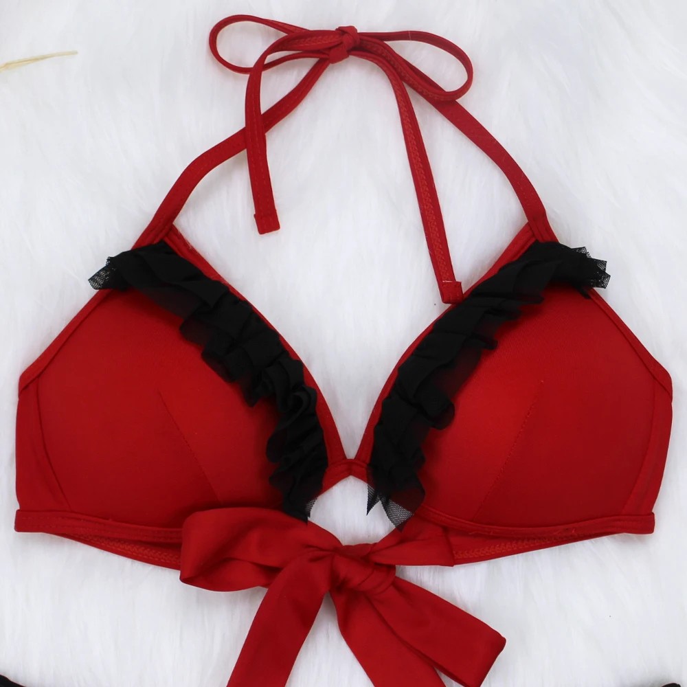 2021 однотонное бикини из двух предметов, женские купальники с пуш-ап, летняя пляжная одежда, Женский винтажный купальник с рюшами, сексуальные купальные костюмы