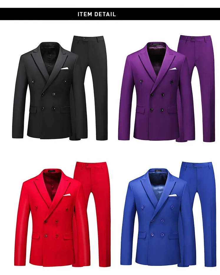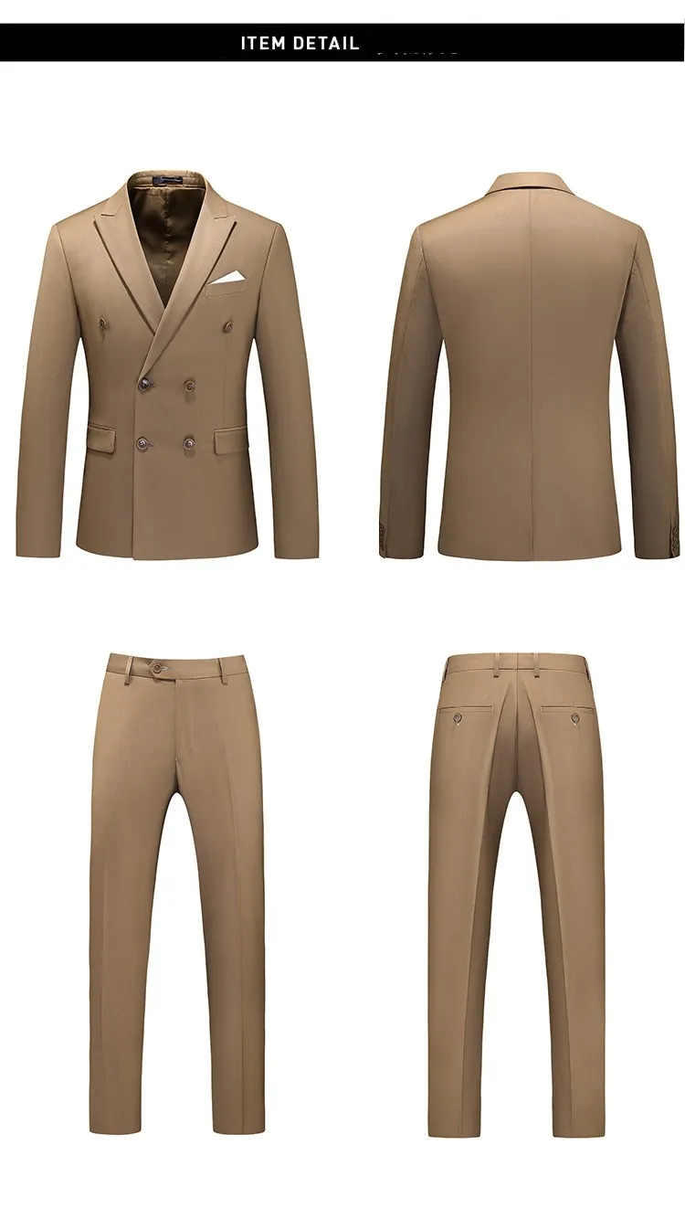 Двубортный смокинг, свадебные официальные комплекты для работы, однотонный пиджак и брюки, облегающая повседневная одежда в Корейском стиле, деловой мужской костюм