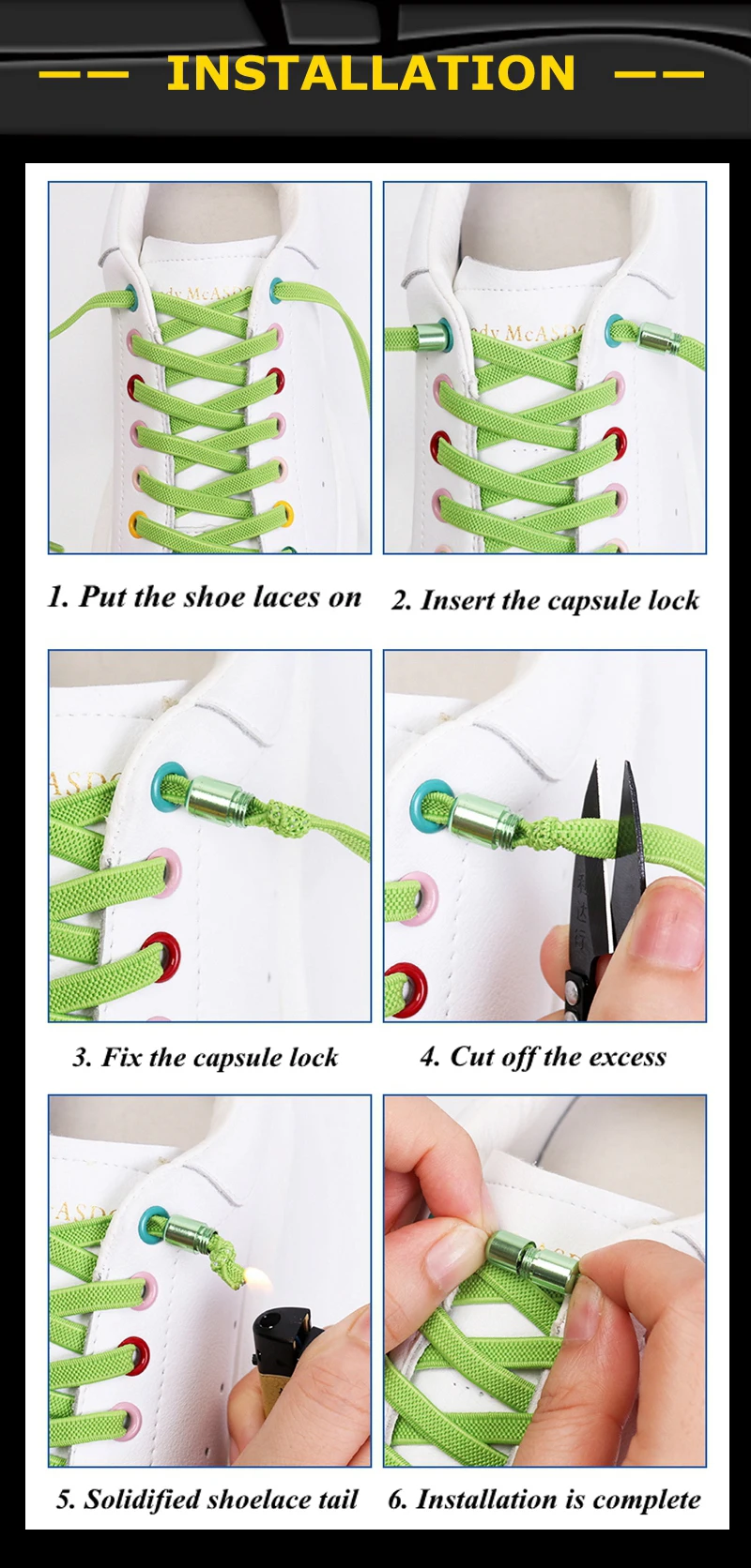 Свободно сочетаются эластичные шнурки, фиксирующие ленивые шнурки, плоские стандартные шнурки без завязывания, круглые металлические капсульные шнурки, 18 цветов