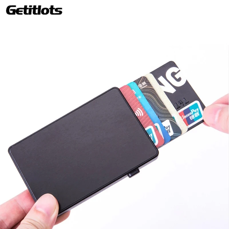 2021 автоматический выдвижной RFID-держатель для карт с защитой от кражи, Умный кошелек для карт, Металлический Алюминиевый ультратонкий держатель для кредитных карт