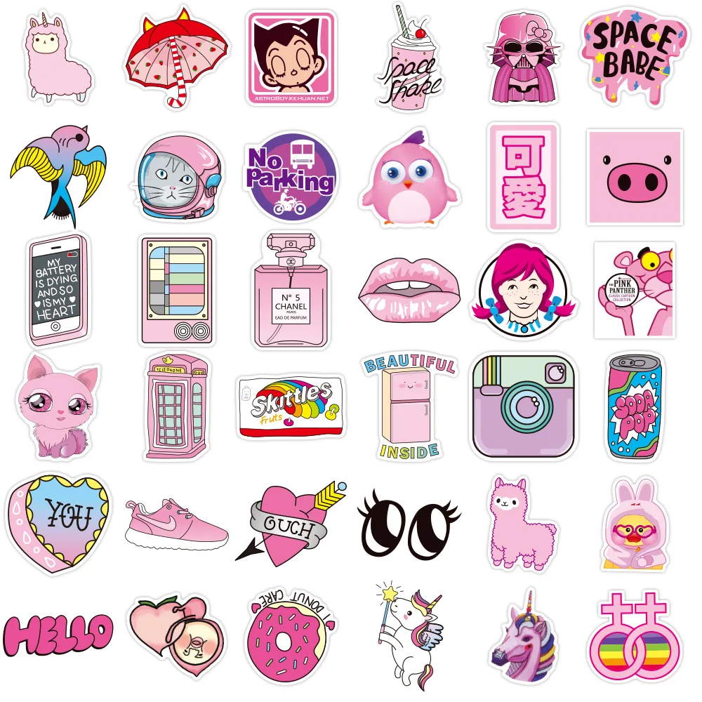 100 шт.компл. Розовые наклейки для девочек, чемодан, ноутбук, скейт...