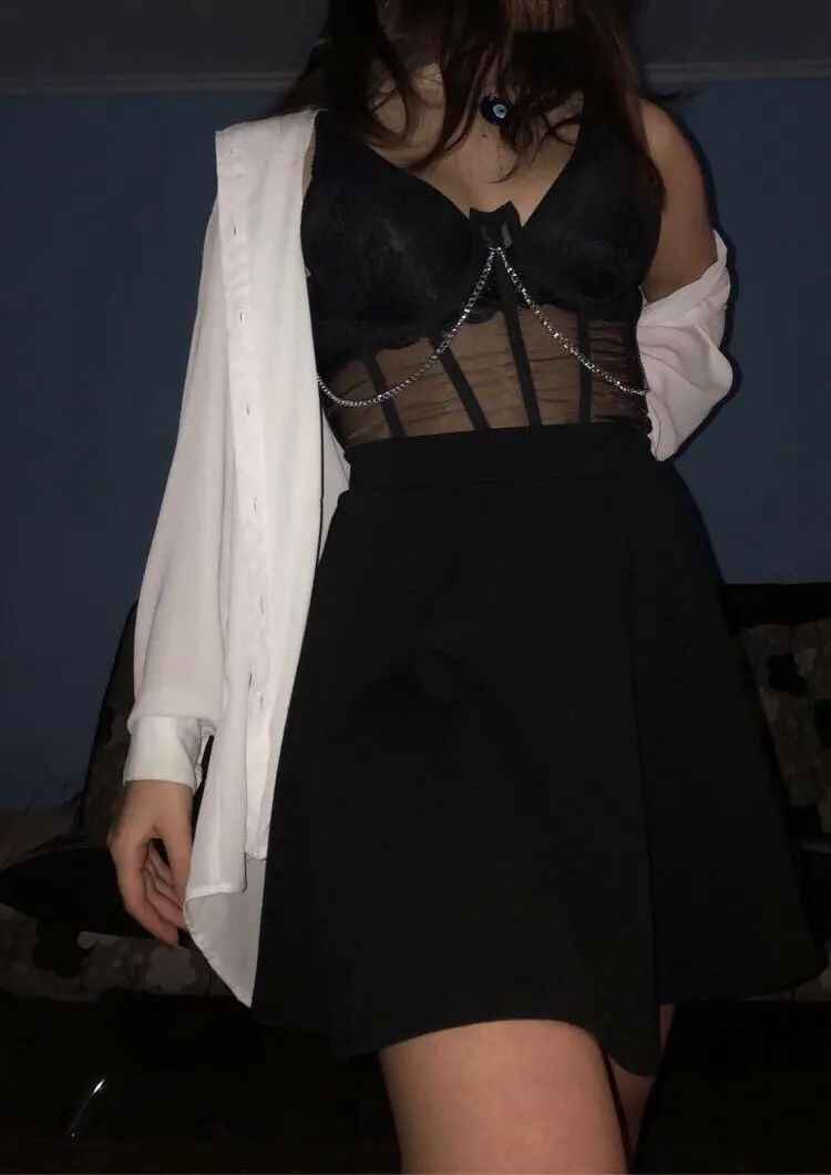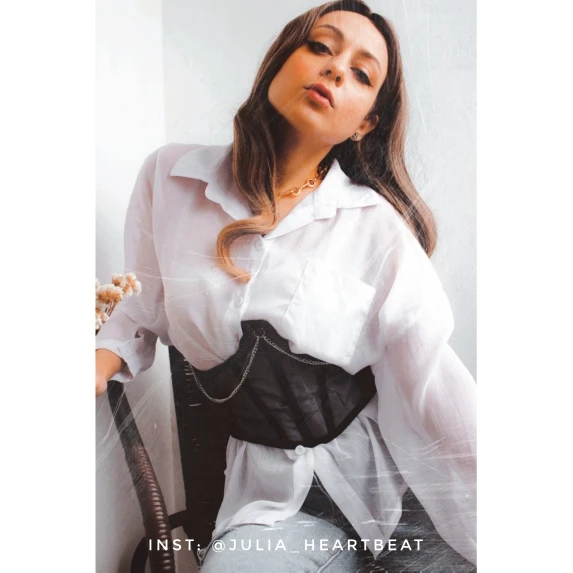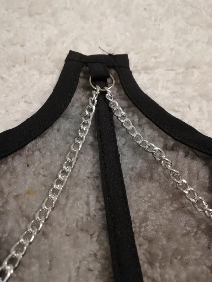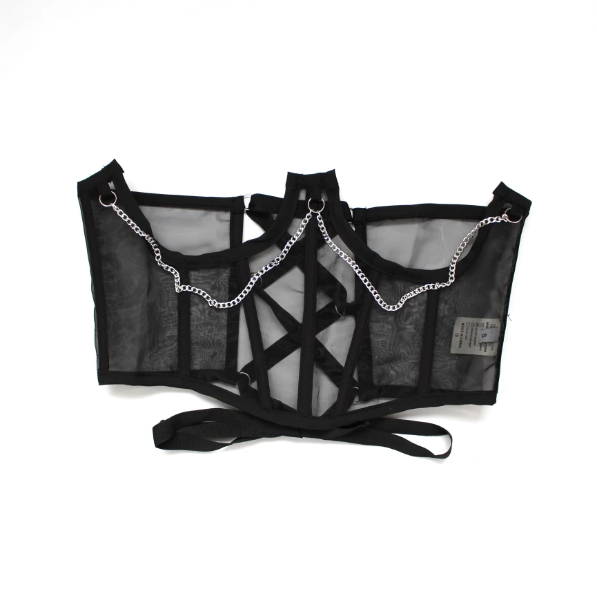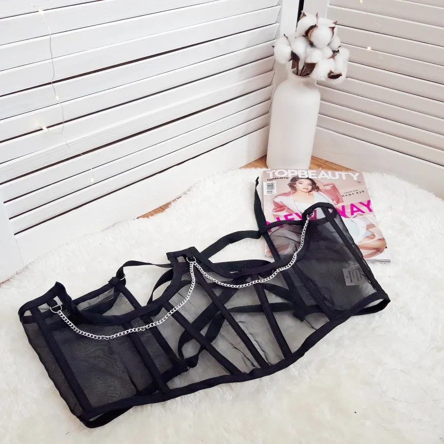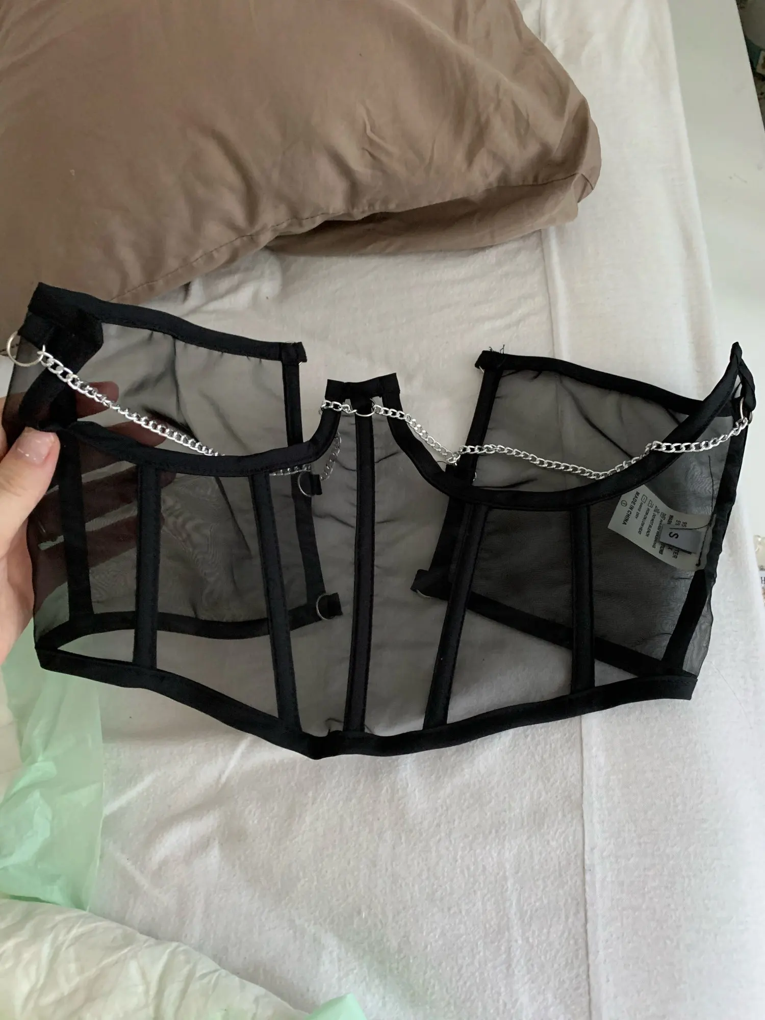 доставка заняла месяц корсет выполнен из тонкой плотной тюлевой ткани, имеются вставки, держащие осанку. Сзади шнуровка. Мне очень понравился декоративный элемент в виде цепей на выбор в белом, телесном и чёрном цветах на ОТ 72см взяла размер L, можно брать смело М, места достаточно