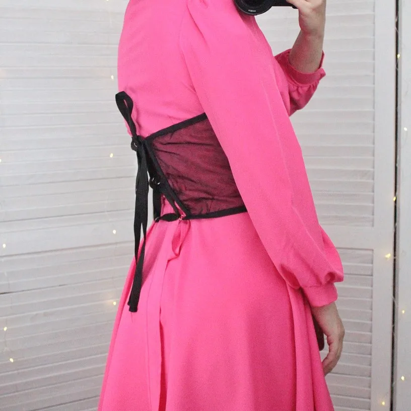 Все как в описании) декоративный корсет, по размеру подошёл, выбирала по таблице указанной продавцом. Из минусов — Жаль что нет косточек под грудь для жесткости каркаса, немного топорщится по краям и по середине.