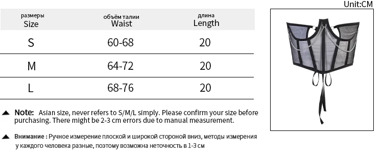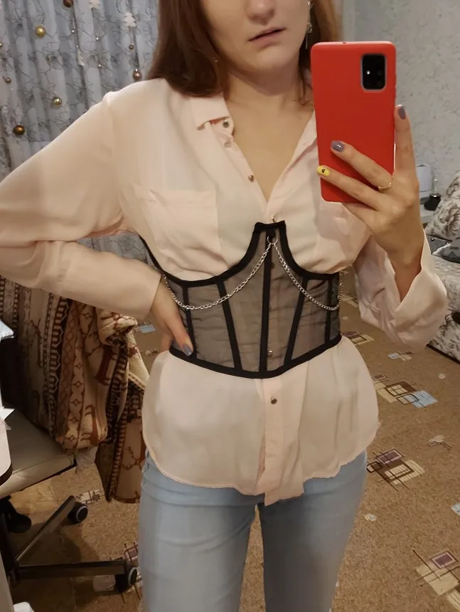 Ультрамодный корсет с цепью Давно хотела такой, наконец-то нашла с хорошими отзывами. Отличный аксессуар, который идеально дополнит любой образ. Смотрится очень круто. Качество высокое. На мои параметры 84-63-83, рост 167 выбрала размер М, не горл большеват в талии. Сзади регулируются шнуровкой. Ткань сетчатая, выбрала в чёрном цвете. Сверху украшен цепями серебристого цвета. Все прошито аккуратно, без торчащих ниток и без зазоров. Очень классное приобретение. Не линейно рекомендую!