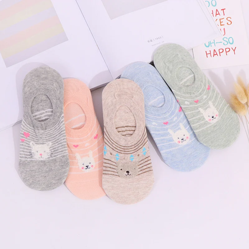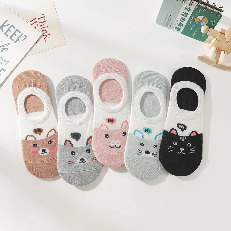 Носки-невидимки женские цветные с животными, удобные милые хлопковы...