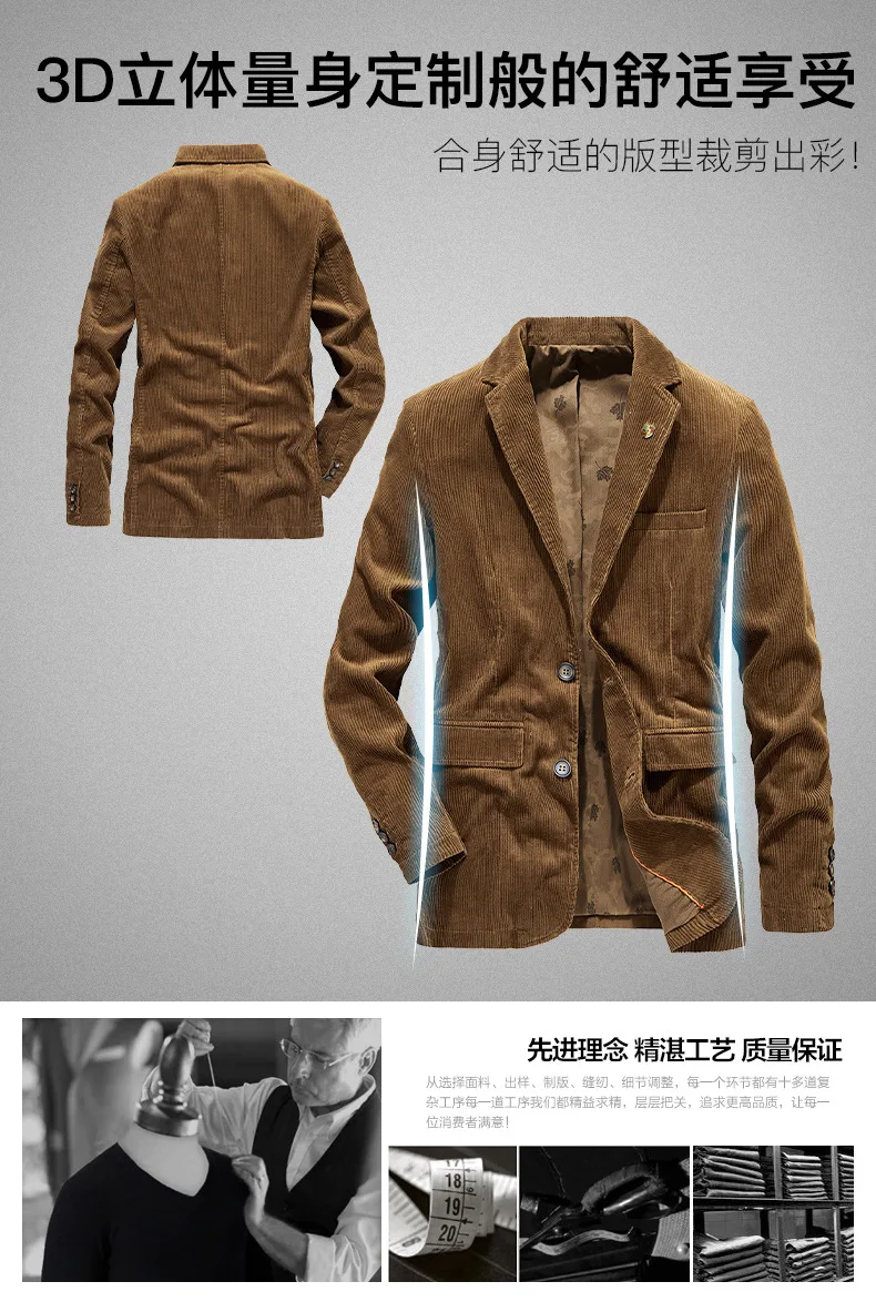 Мужские костюмы, повседневный вельветовый костюм, официальное пальто для мужчин среднего возраста, модные деловые куртки, один костюм для мужчин, Terno Masculino