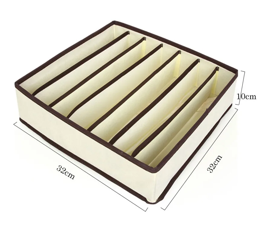 1. Название продукта: ящик для хранения нижнего белья 2. Материал изделия: нетканый материал + Высококачественный картон 2,0 мм 3. Размер изделия: 6 секций: 32*16*10 см 7 ячеек: 32*32*10 см 8 ячеек: 28*14*10 см 12 ячеек: 30*31*10 см 24 квадрата: 33*30*10 см 4. Характеристики продукта: бюстгальтеры для хранения, нижнее белье, носки, галстуки, шарфы и так далее. 5. Характеристики продукта: складной, прочный, дышащий, универсальный, практичный. Советы: размер измеряется вручную, возможна погрешность в 0-1 см, приносим свои извинения, просим покупателей и друзей свериться с размерами перед покупкой, а затем покупать, большое спасибо
