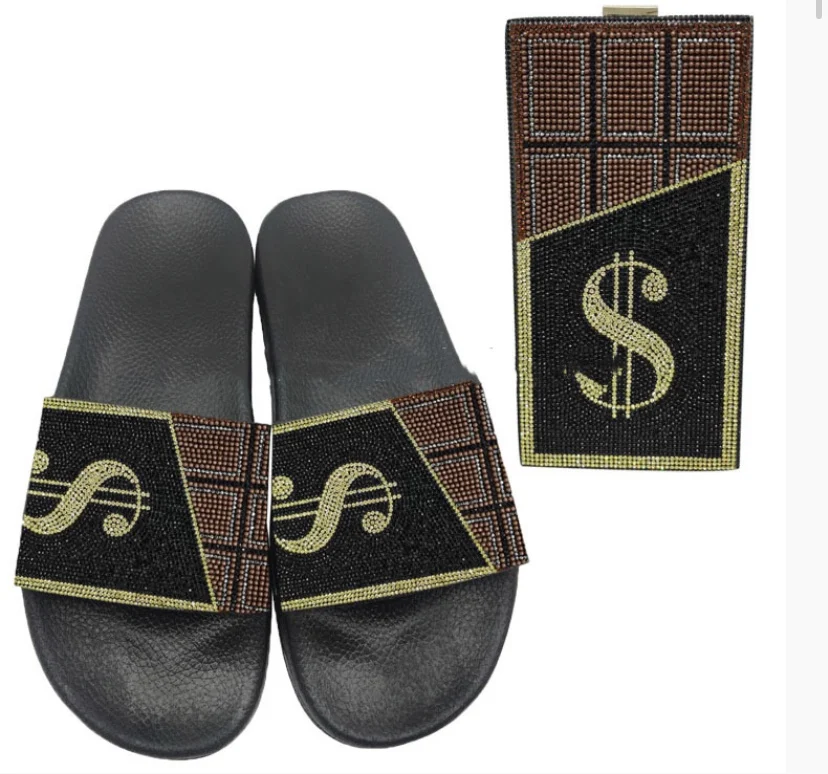 Шлепанцы женские в стиле доллар, стразы и сумка, Нескользящие, модн...