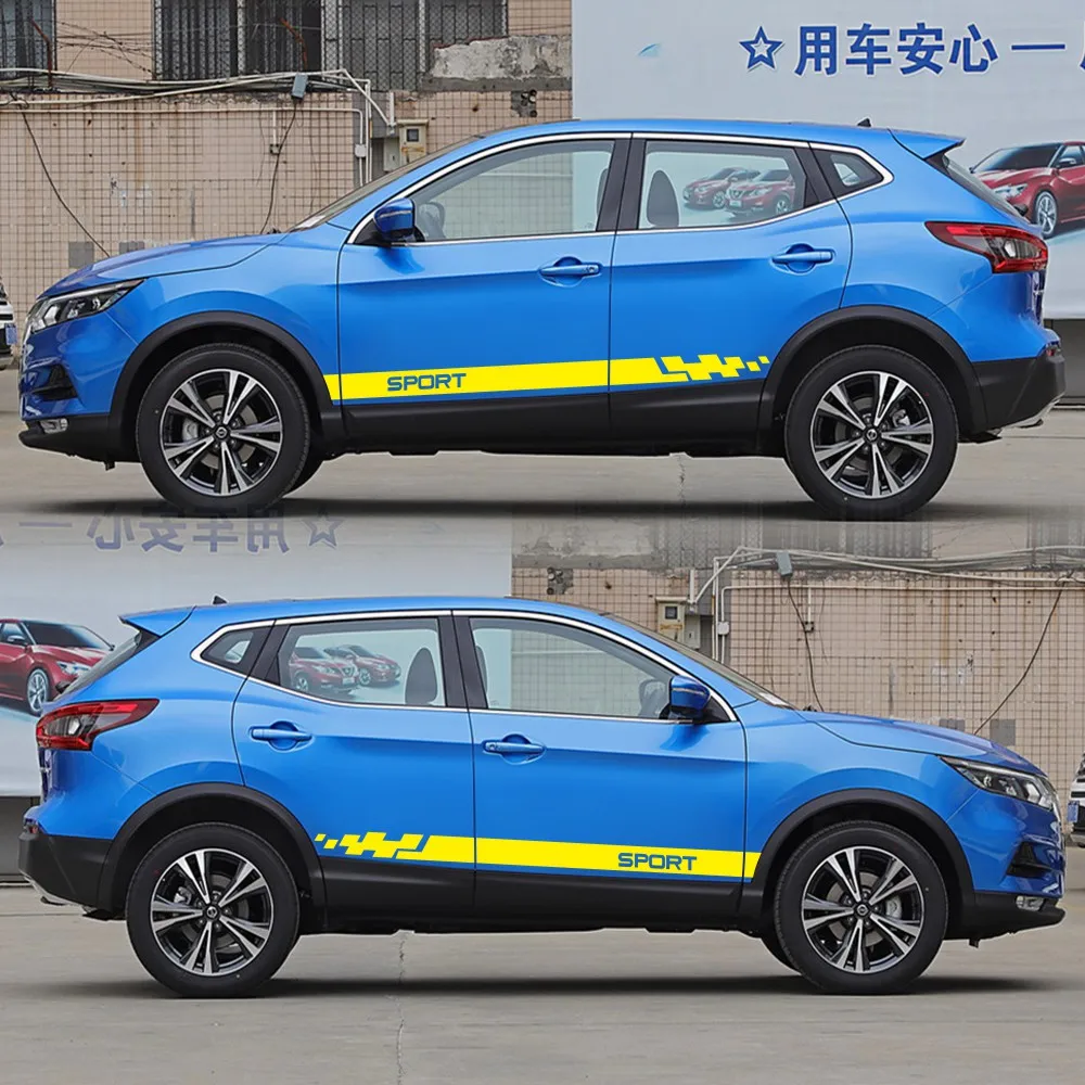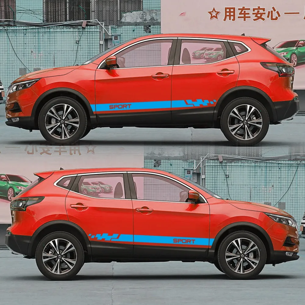 Автомобильные наклейки, виниловая пленка для автомобиля, полоски с обеих сторон, декоративные наклейки для стайлинга, автомобили, спортивный тюнинг, автомобильные аксессуары для самостоятельной сборки, 2 шт.