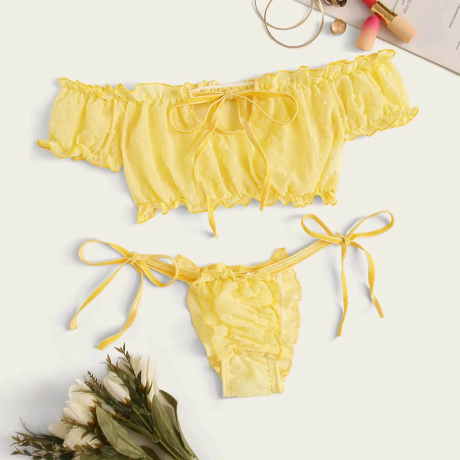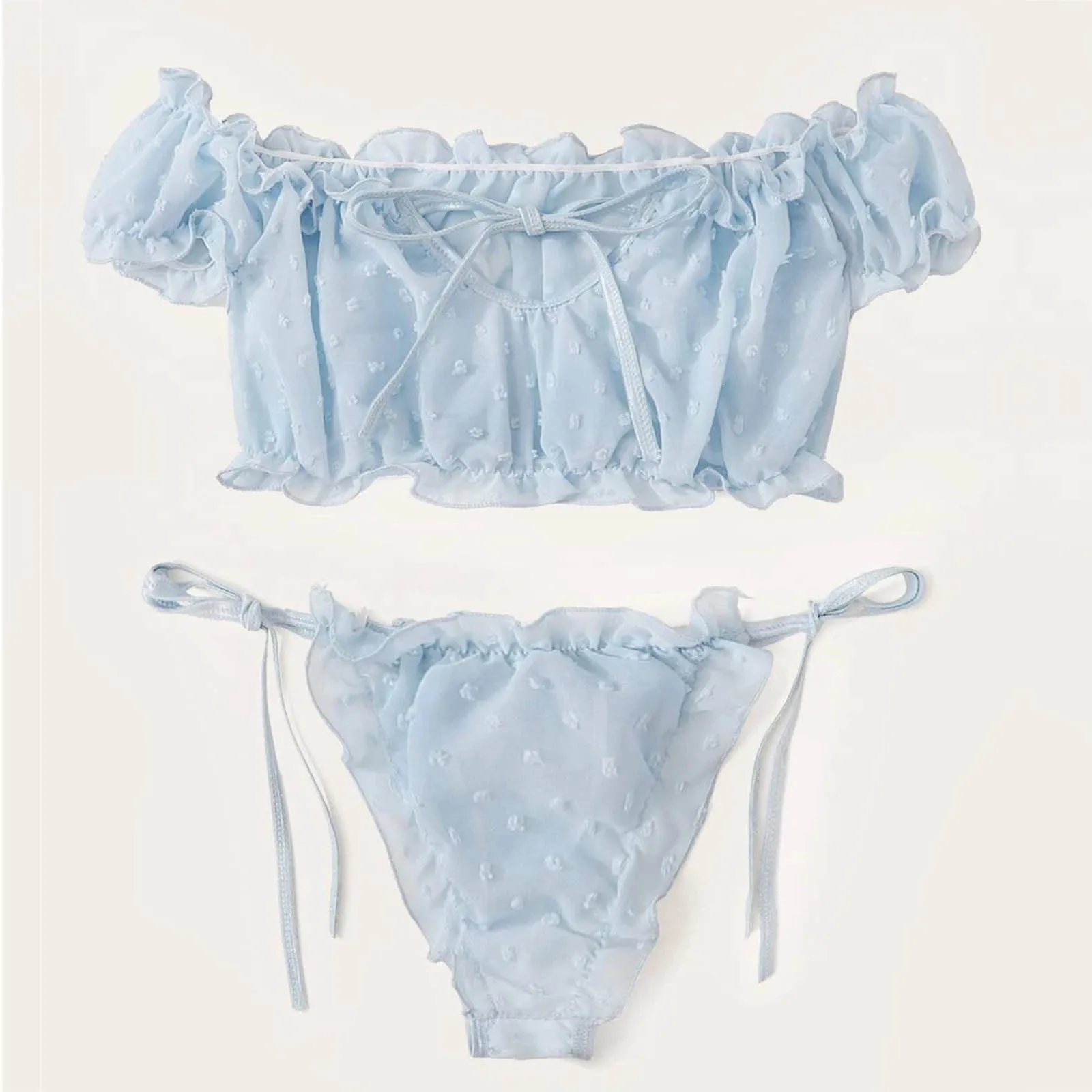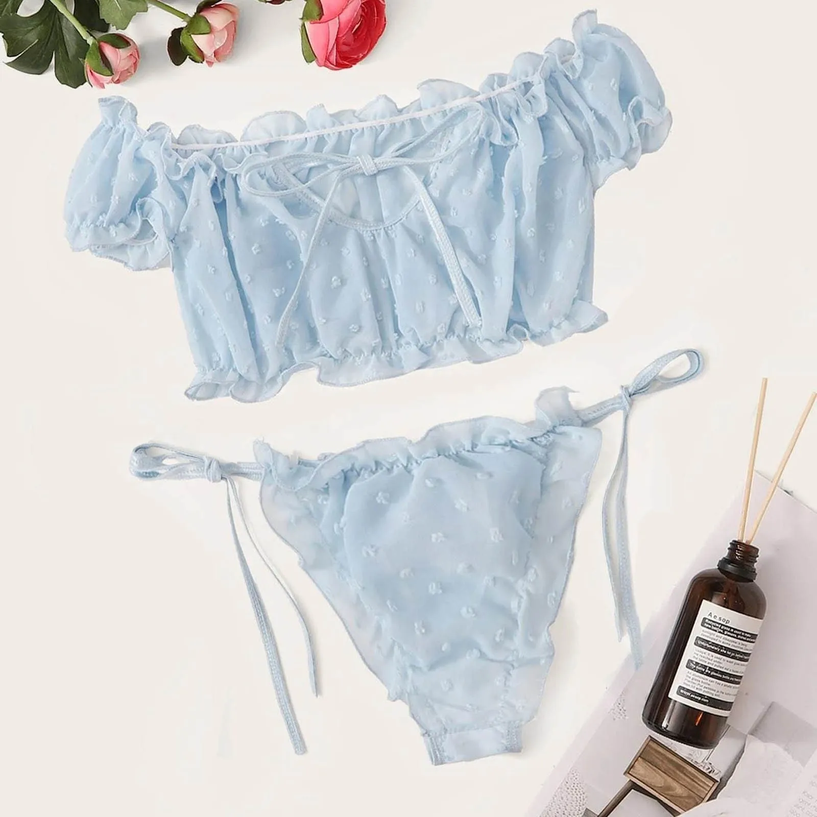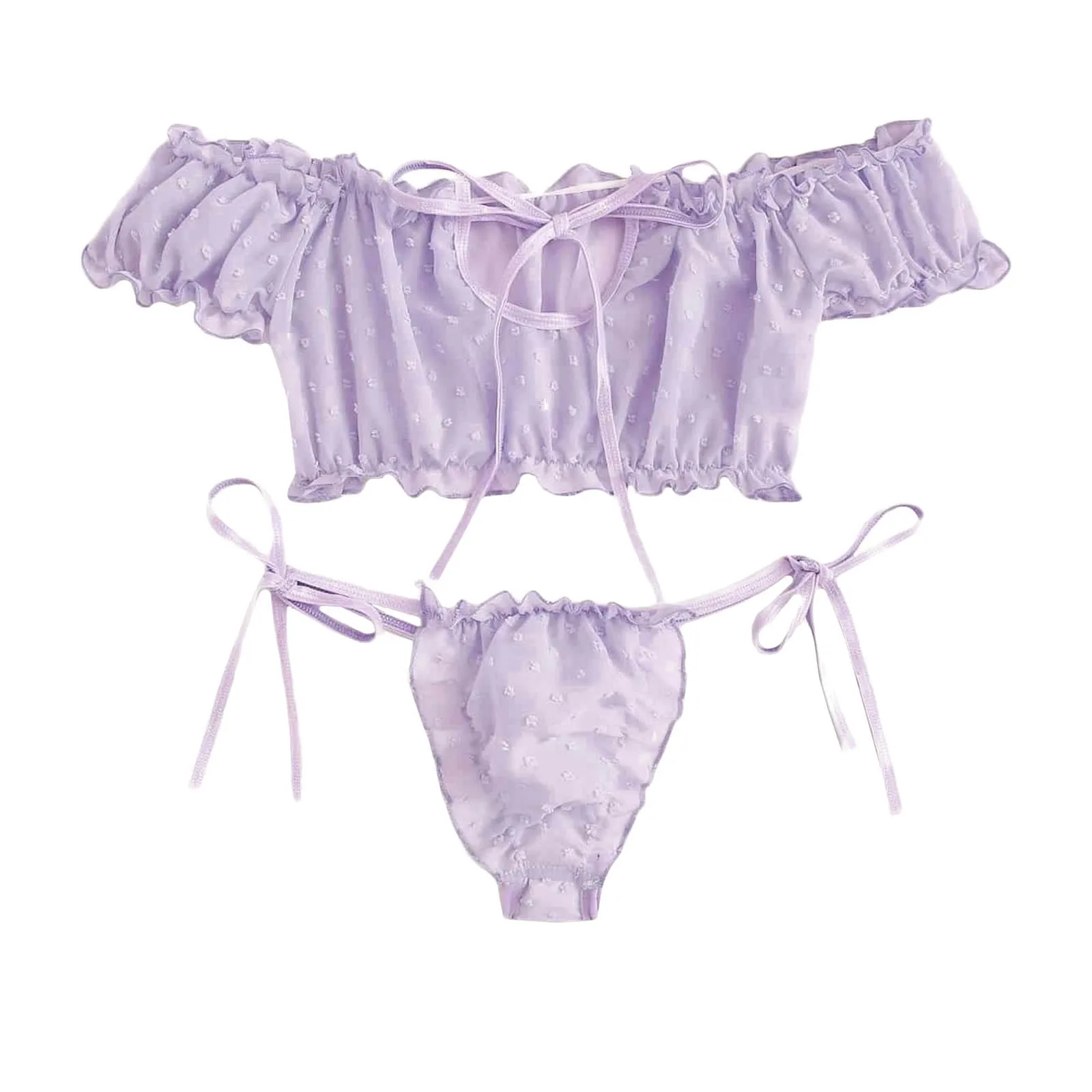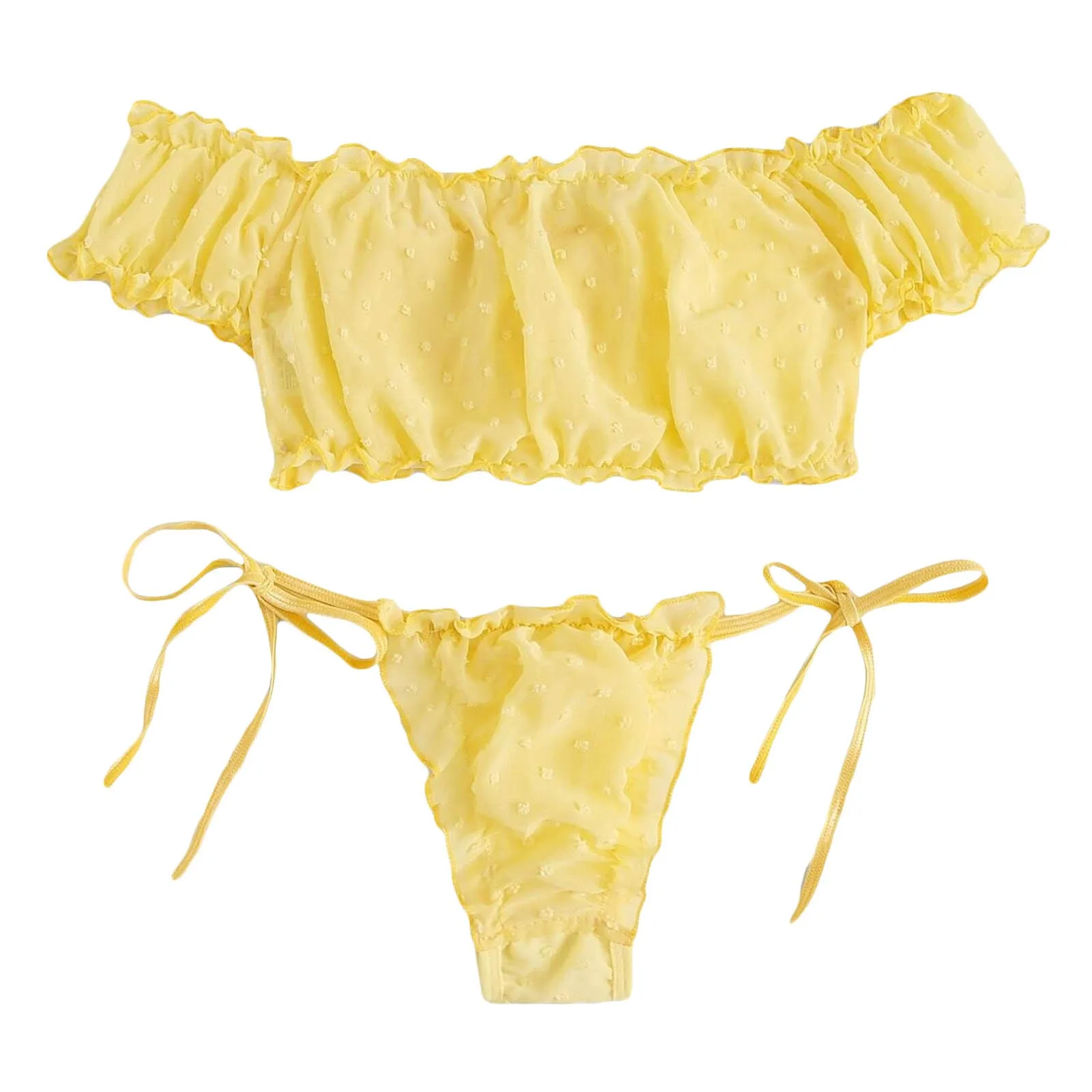 Комплект женского каваи белье в горошек, бюстгальтер без бретелек, стринги, однотонное пикантное ночное белье, экзотическое нижнее белье