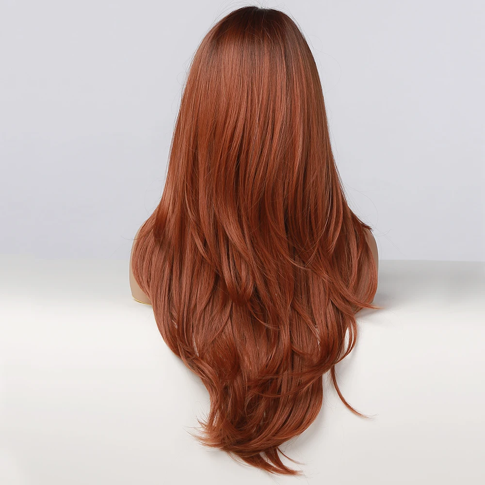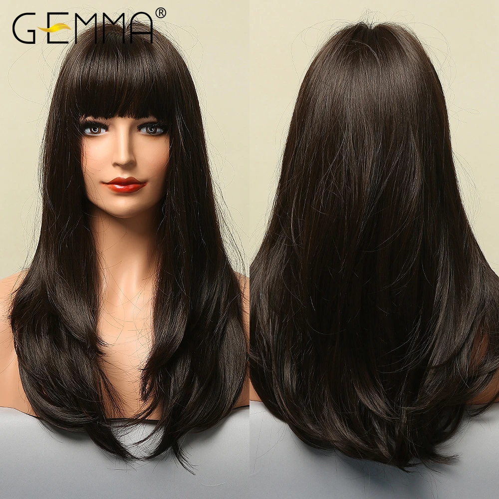 Длинный прямой парик GEMMA с эффектом омбре, черный, оранжевый, винно-красный парик с челкой, синтетические парики для женщин, термостойкие Многослойные косплей, повседневный парик