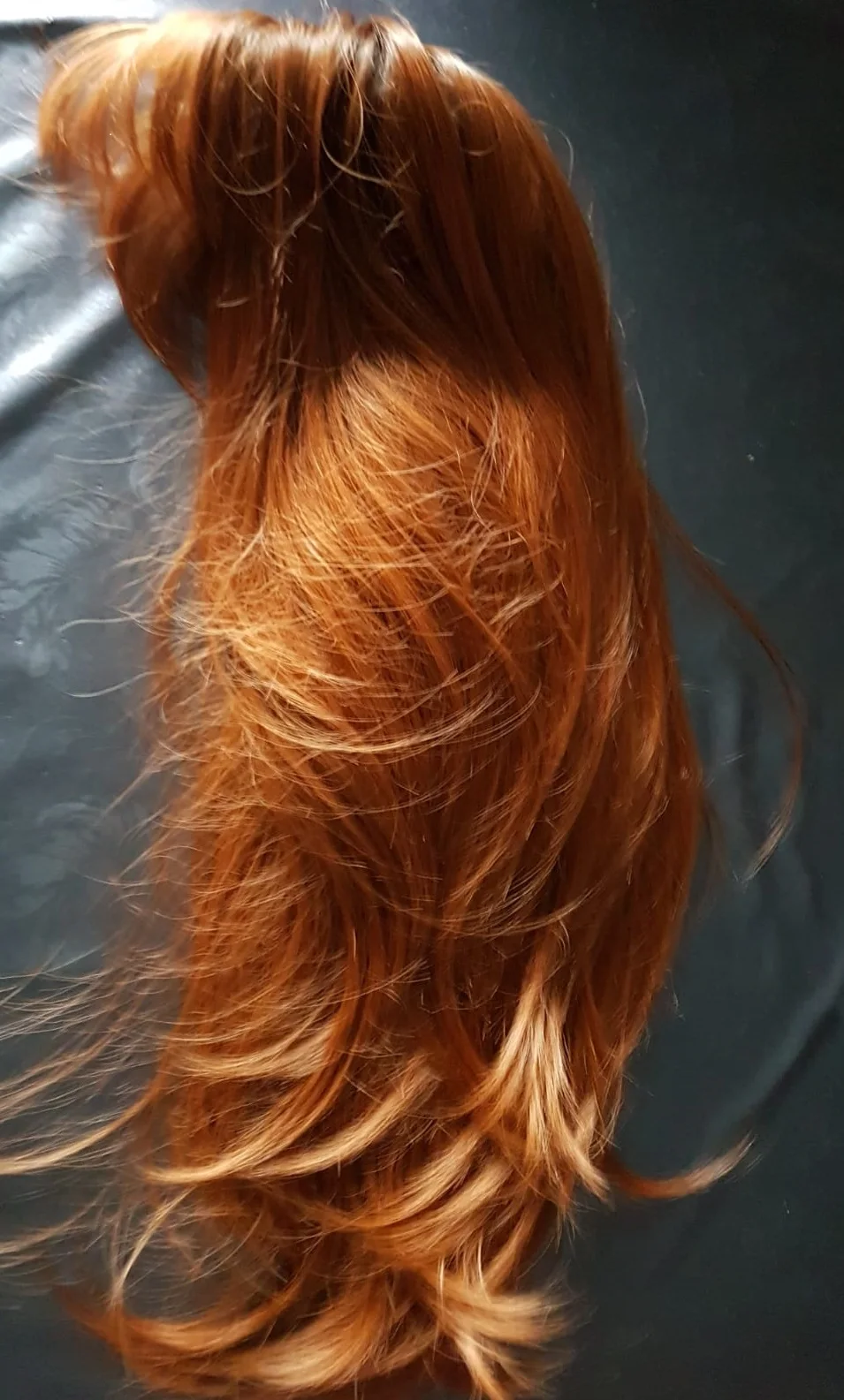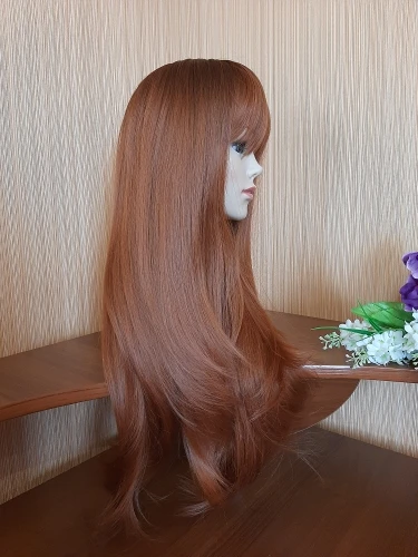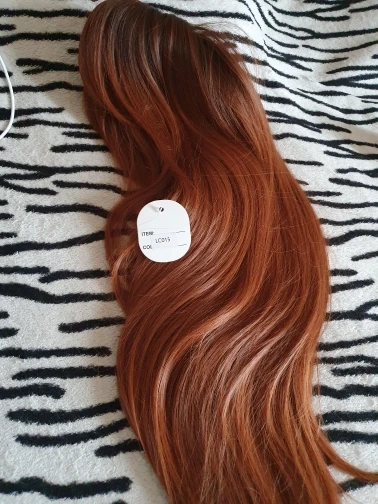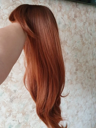 Шикарный яркий парик. Качество изумительное, как всегда у продавца. Волосы как натуральные. Нет искусственного блеска как у куклы. Длинный, чёлку можно подстричь "под себя". Локоны ложатся красиво. Цвет рыжий. У корней ближе к терракотовому (немного темней). Рекомендую к покупке. Продавец очень приятный в общении. Заказ отправил быстро. В общении корректен.