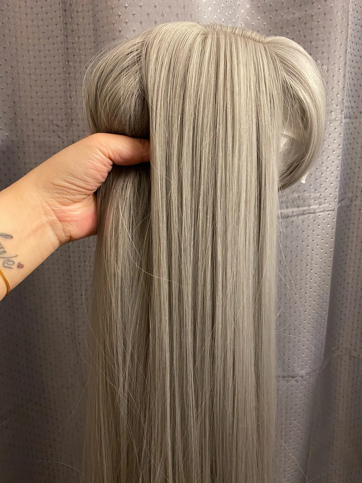 Получил парик с бесплатной крышкой парика. Парик немного блестит и имеет некоторые склеенные Редкие пятна. Но цвет-то, что я хотел. Если бы волосы не падали так сильно. Из-за длины он имеет свойство легко запутываться. Продавец не был очень коммуникативным, когда я спрашивал о цвете перед покупкой.