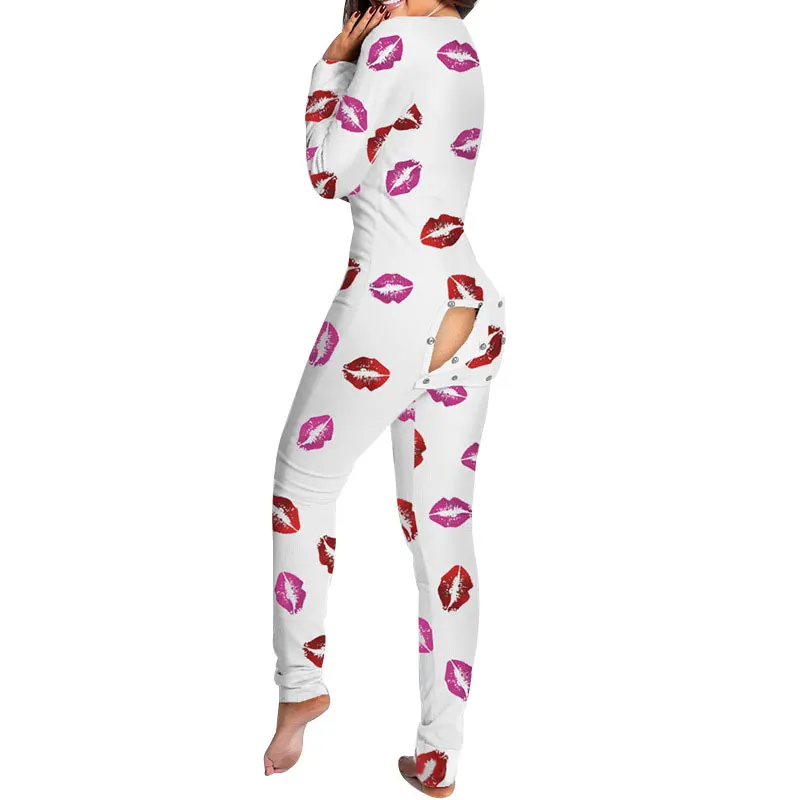 Пикантные Для женщин пижамы Комбинезоны на пуговицах спереди функциональный отворот на пуговицах с v-образным вырезом Пижама комбинезон для взрослых Пижама femmer для сна