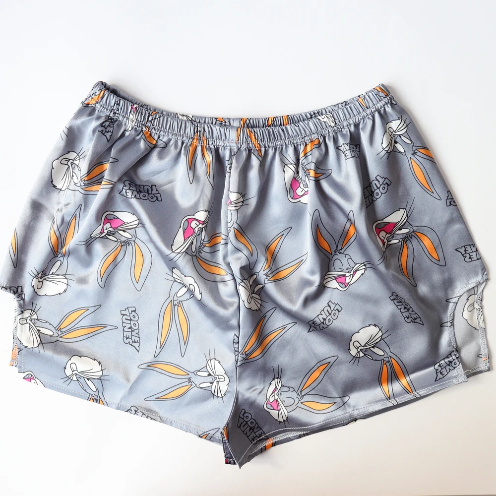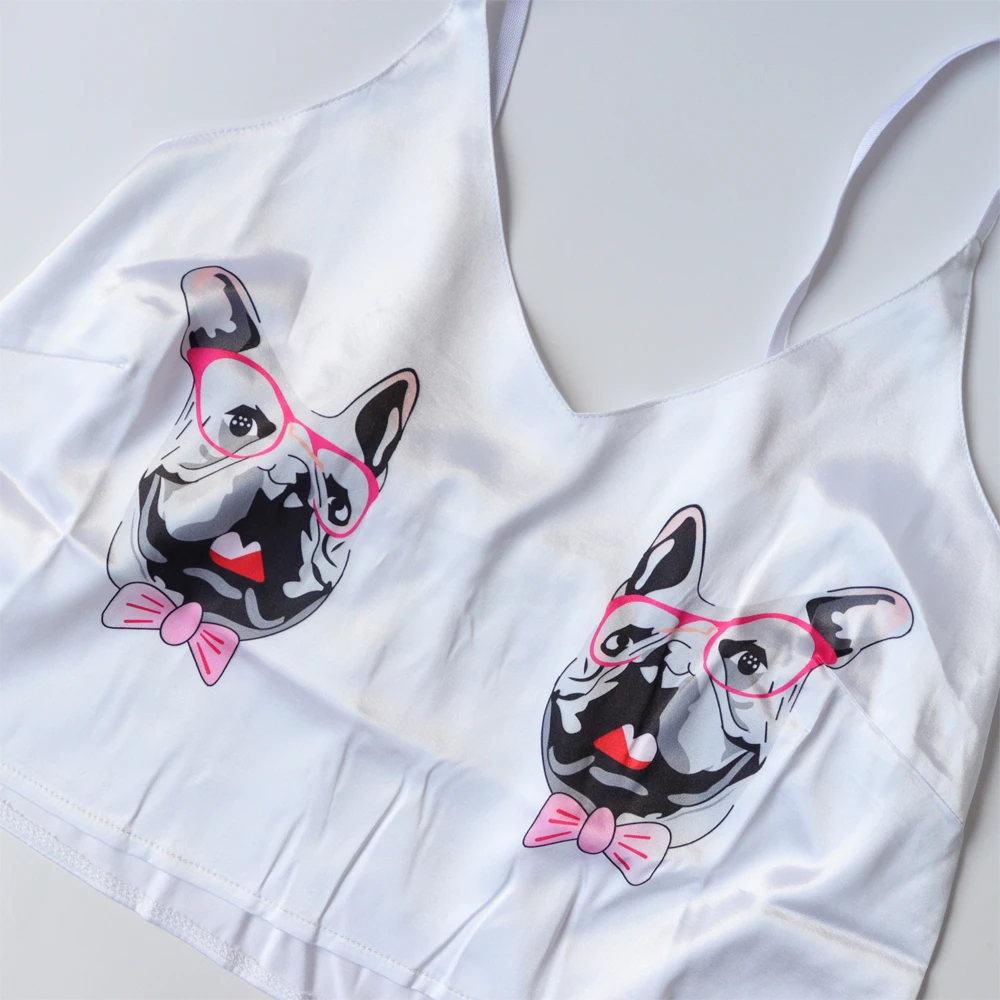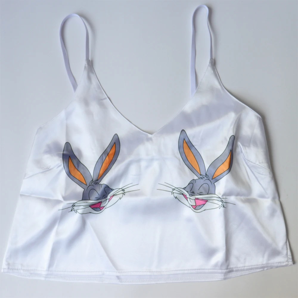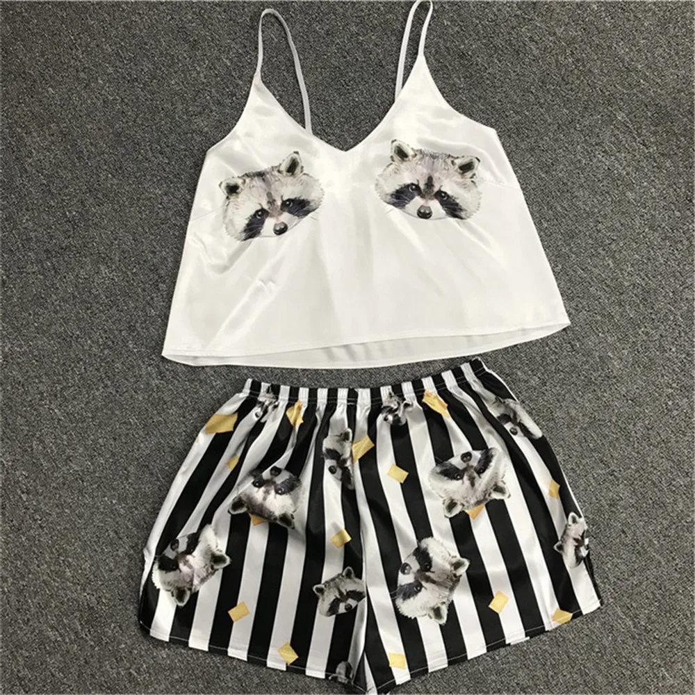 Анимальный принт из мультиков Милая Пижама домашняя одежда летние футболки с v-образным вырезом сексуальные пижамы женское сексуальное платье с тоненькими полосочками, свободная Пижама Атлас женский костюм