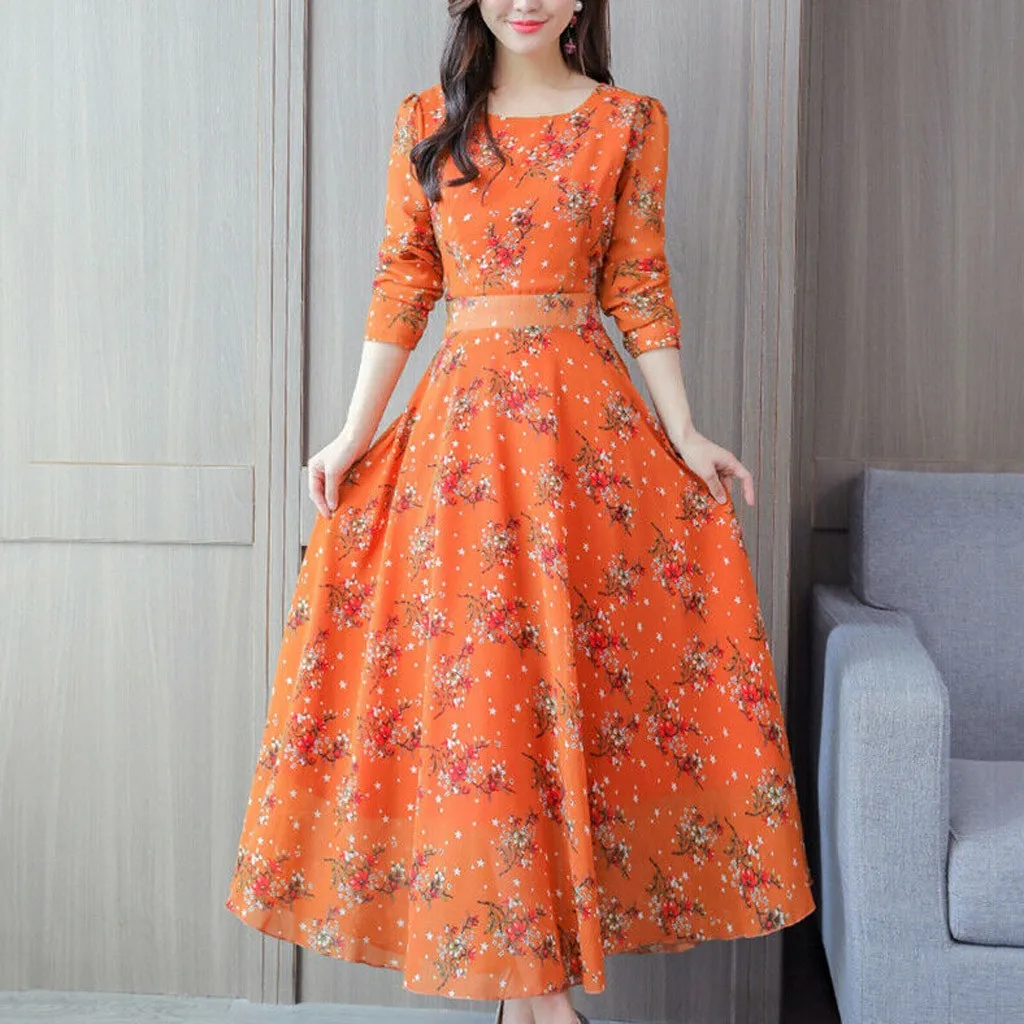 Платье TELOTUNY женское, с цветочным принтом, в пляжном стиле, для осени, с длинным рукавом, повседневное, вечернее, винтажное, в стиле бохо, 2020