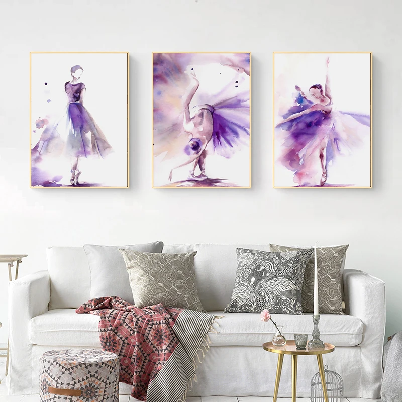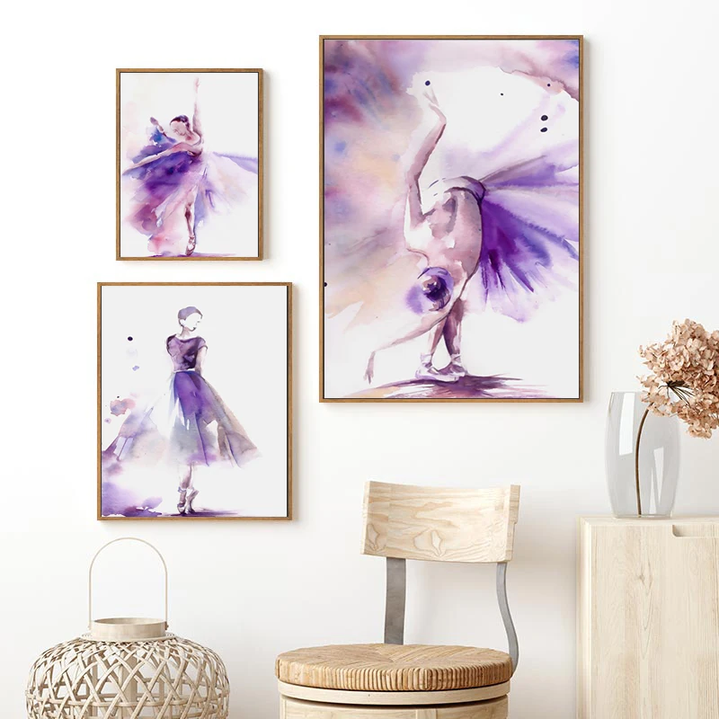 Фиолетовый балетный танцор холст картина девушка комната искусство северных Плакаты и принты Современное украшение для дома, Настенная картина без рамки HD0057