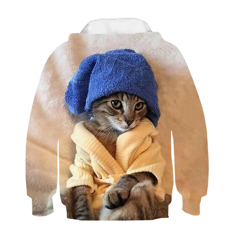 Лидер продаж, детские толстовки с 3D котом, одежда для мальчиков и девочек с забавными животными, свитшот с длинным рукавом, новый пуловер с аниме-рисунком, Осенние Топы