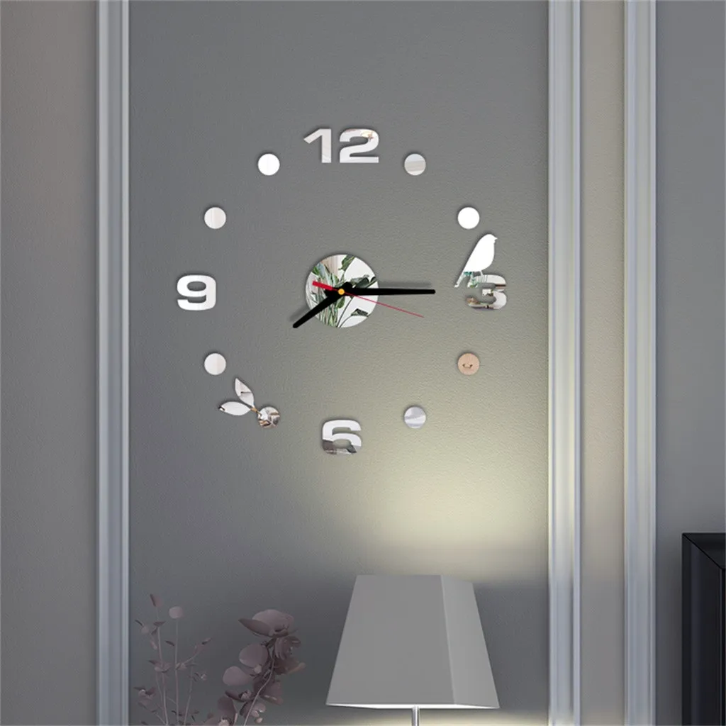 1 комплектНастенная Наклейка с зеркальным эффектом и часами (без аккумулятора)