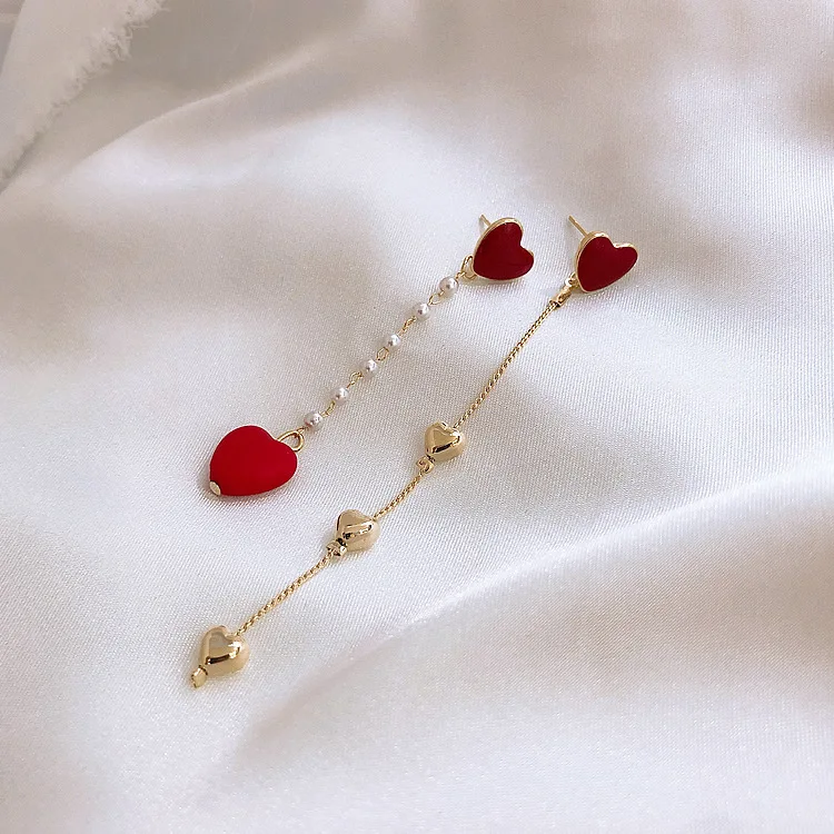 S925 Серебряная игла маленькое красное сердце асимметричные серьги творческая личность Вигор девушка длинные серьги в форме сердца женские ювелирные изделия