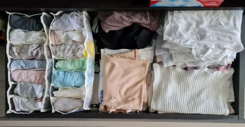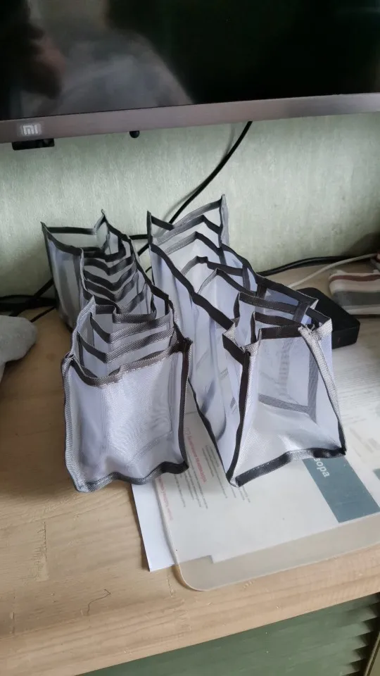 Хорошие разделители. Был небольшой запах- но я не стала стирать, они пришли в новой упаковке. Все быстро выветрилось. В комоде теперь порядок. Нужно плотно из забивать, тогда они будут держаться