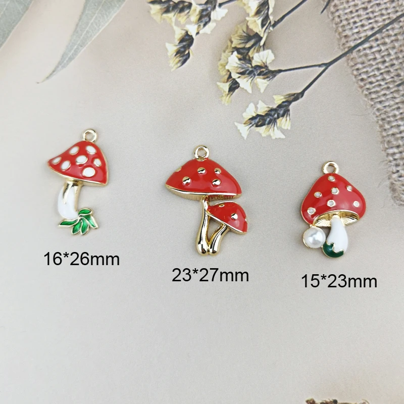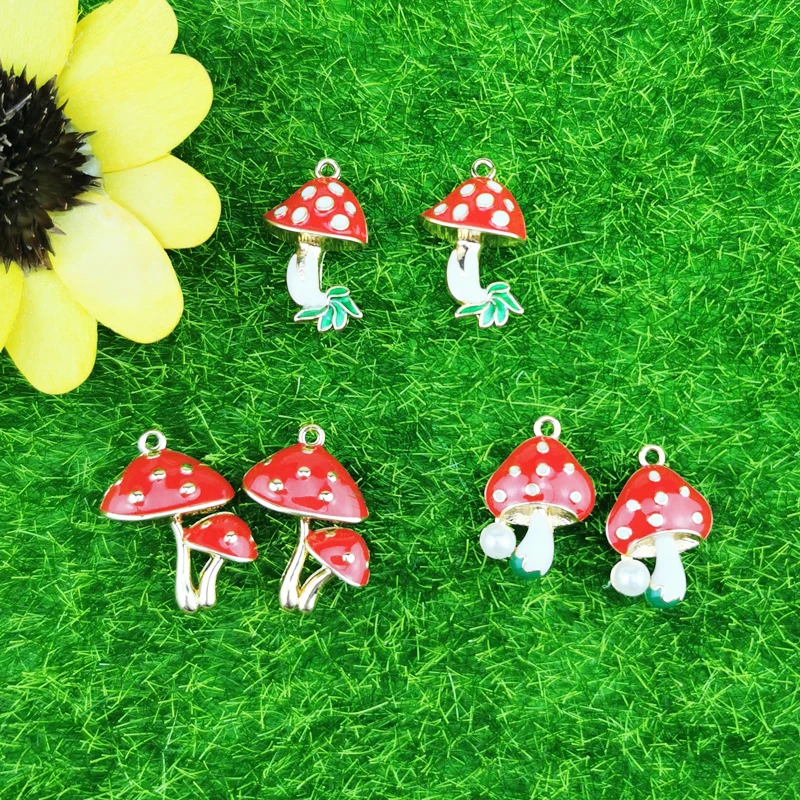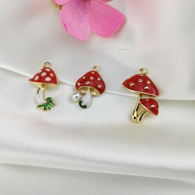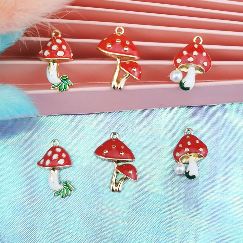 Подвески-Грибы из эмалированного сплава с жемчугом для изготовления ювелирных изделий, ожерелья и браслета, 10 шт., YZ679