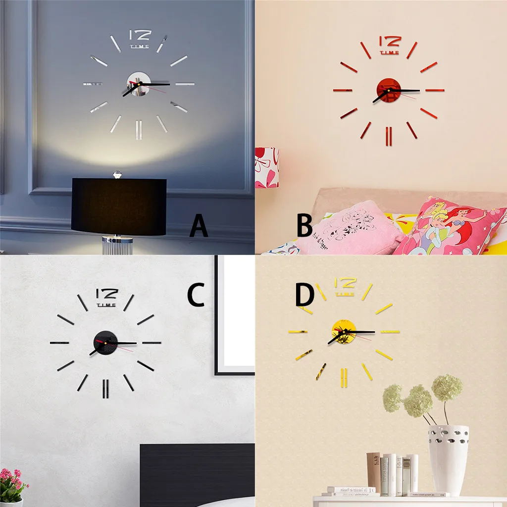 1 комплект Зеркальный эффект Настенная Наклейка с часами (без батареи)