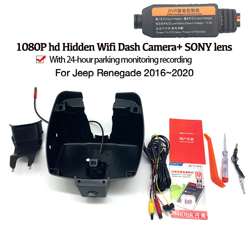 Автомобильный видеорегистратор с Wi-Fi, видеорегистратор для Jeep Renegade 2016 2018 2019 2020 Novatek 96658, ночное видение, высокое качество, hd