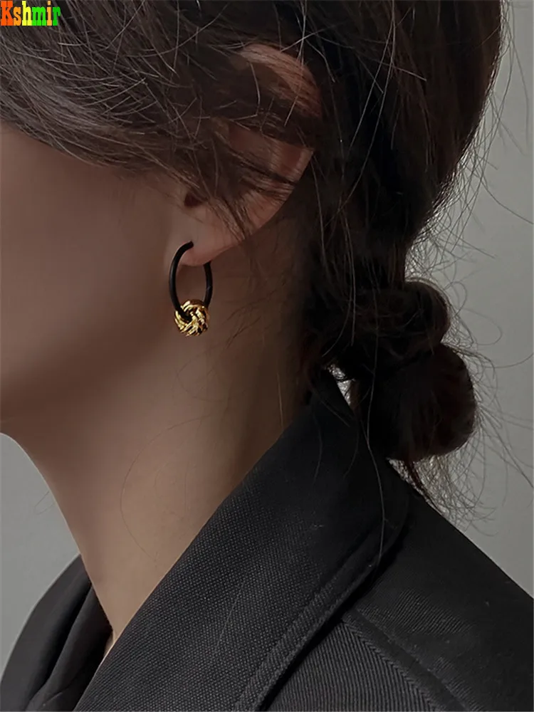Серьги Kshmir в стиле ретро женские, черные темпераментные простые корейские серьги в виде узла серьги-кольца с индивидуальной застежкой, 2020