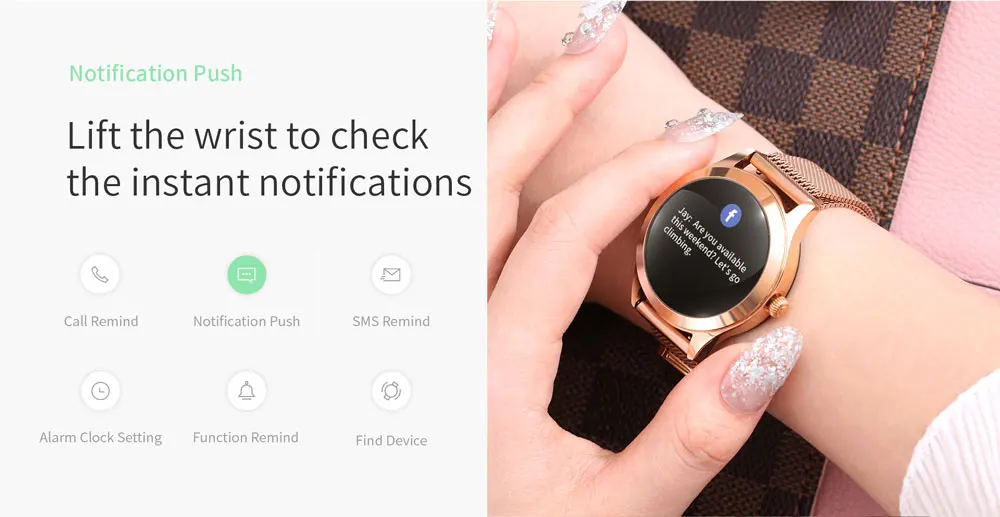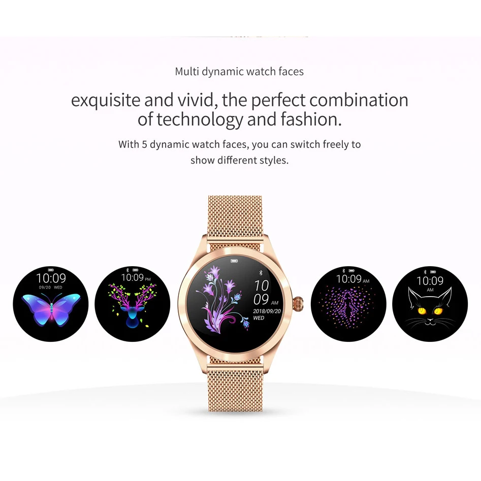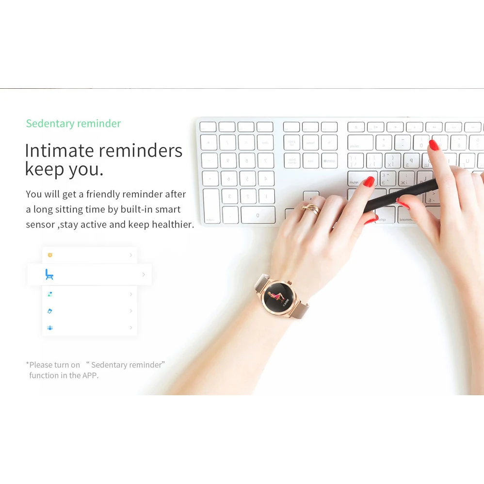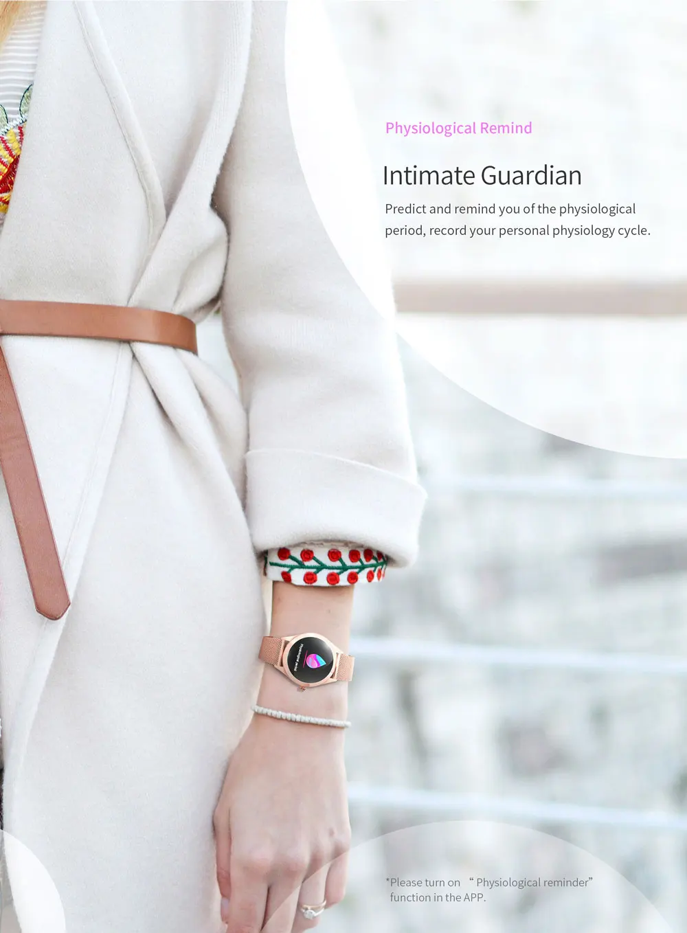 1. Особый дизайн для женщин и девочек: Вы можете увидеть женский физиологический период управления, это побудит вас установить функцию женского цикла: только менструальный период, период беременности, период беременности и период матери. Это ваш личный помощник по здоровью 2. Быстро проверьте состояние вашего фитнеса: Цветной экран позволит вам четко видеть время даже под солнцем. Отслеживает ваши шаги, расстояние, сожженные калории, пульс, отслеживание сна; И записывает данные как в приложении для смартфона, так и в часах. Это ваш фитнес-компаньон 3. Оправдайте свои ожидания: Легко сопрягается со смартфоном. Своевременная синхронизация входящего идентификатора вызывающего абонента, контента SMS, push-уведомлений приложений (например, Facebook, Twitter, WhatsApp). Вы можете прочитать сообщения и отклонить телефон. Это ваш партнер по работе 4. Широкая совместимость: Эти умные часы поддерживают большинство телефонов android и ios (Bluetooth 4,0, Android 4,4 и iOS 8,0 и выше). Умные часы, такие как iPhone, Samsung Galaxy, Samsung Note, Sony, HTC, Huawei, Xiaomi, ZTE, Lenovo, Oppo и т. д. 5. Срок службы батареи и идеальный размер: Смарт-часы Android-литиевая батарея емкостью 130 мАч, среднее время использования составляет 5-7 дней в зависимости от использования. Использование водонепроницаемости IP68, позволяет носить во время душа или дождя даже при плавании