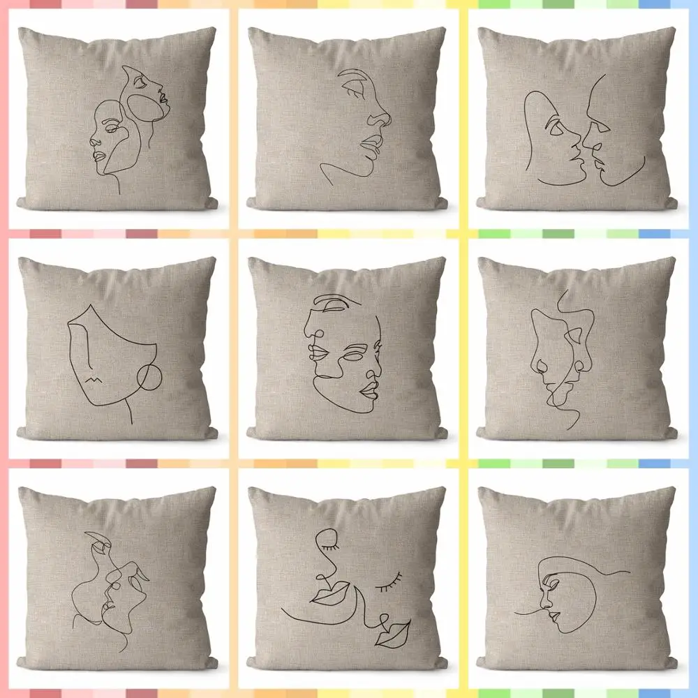 Льняные наволочки для подушек, абстрактная фигурка палочки, человеческое лицо, украшение для дома, декоративные наволочки для дивана в фермерском стиле, 40*40 45*45