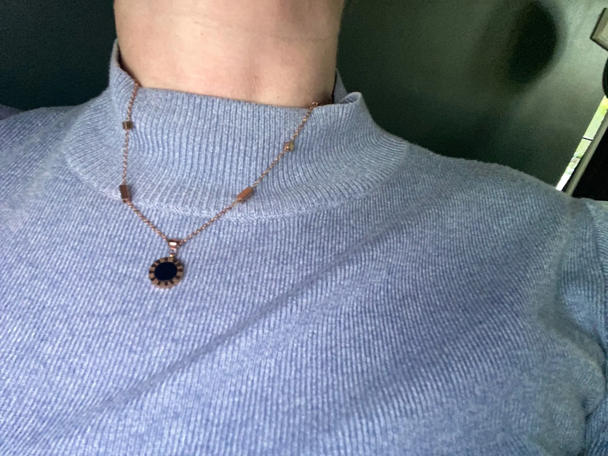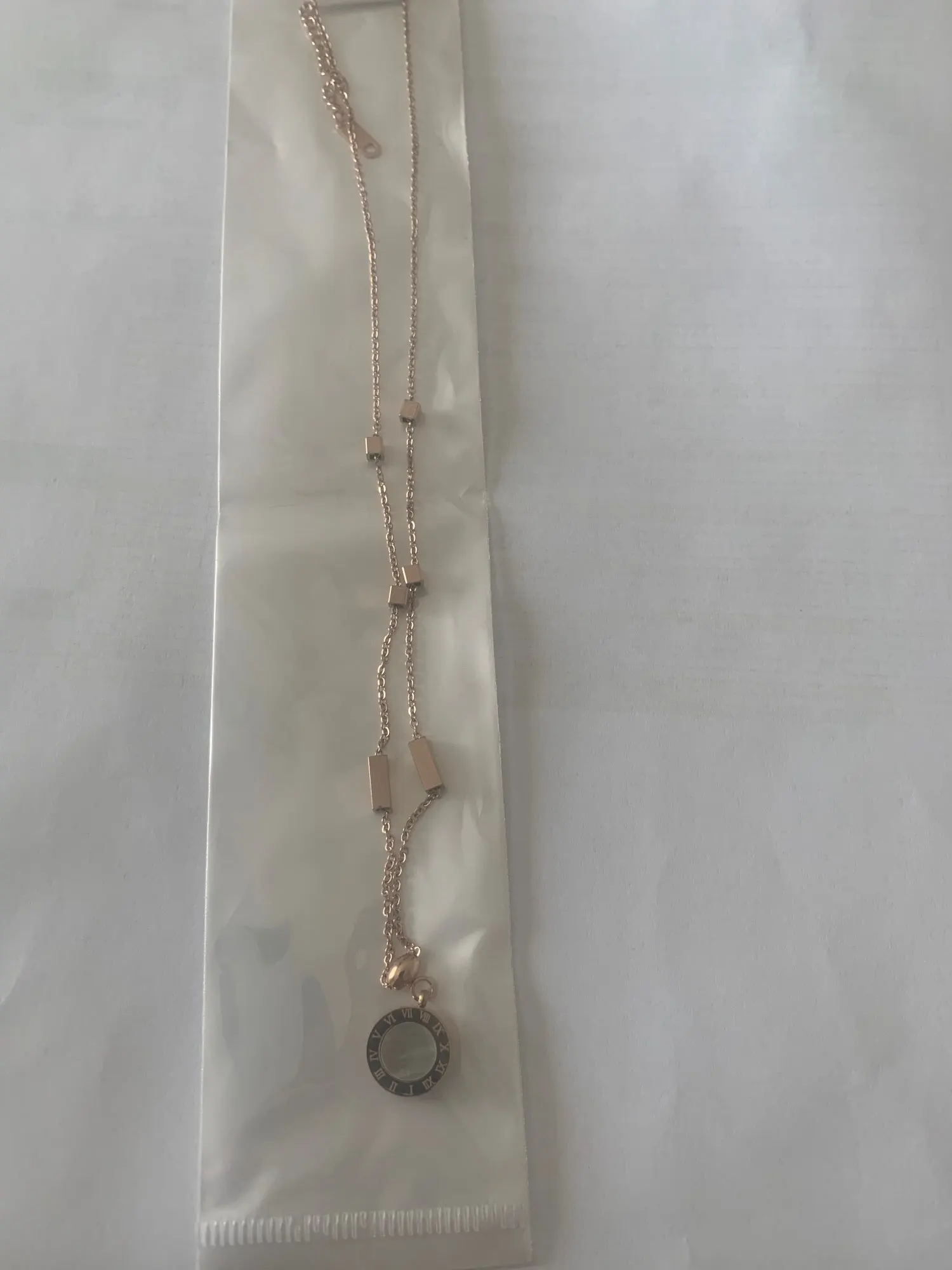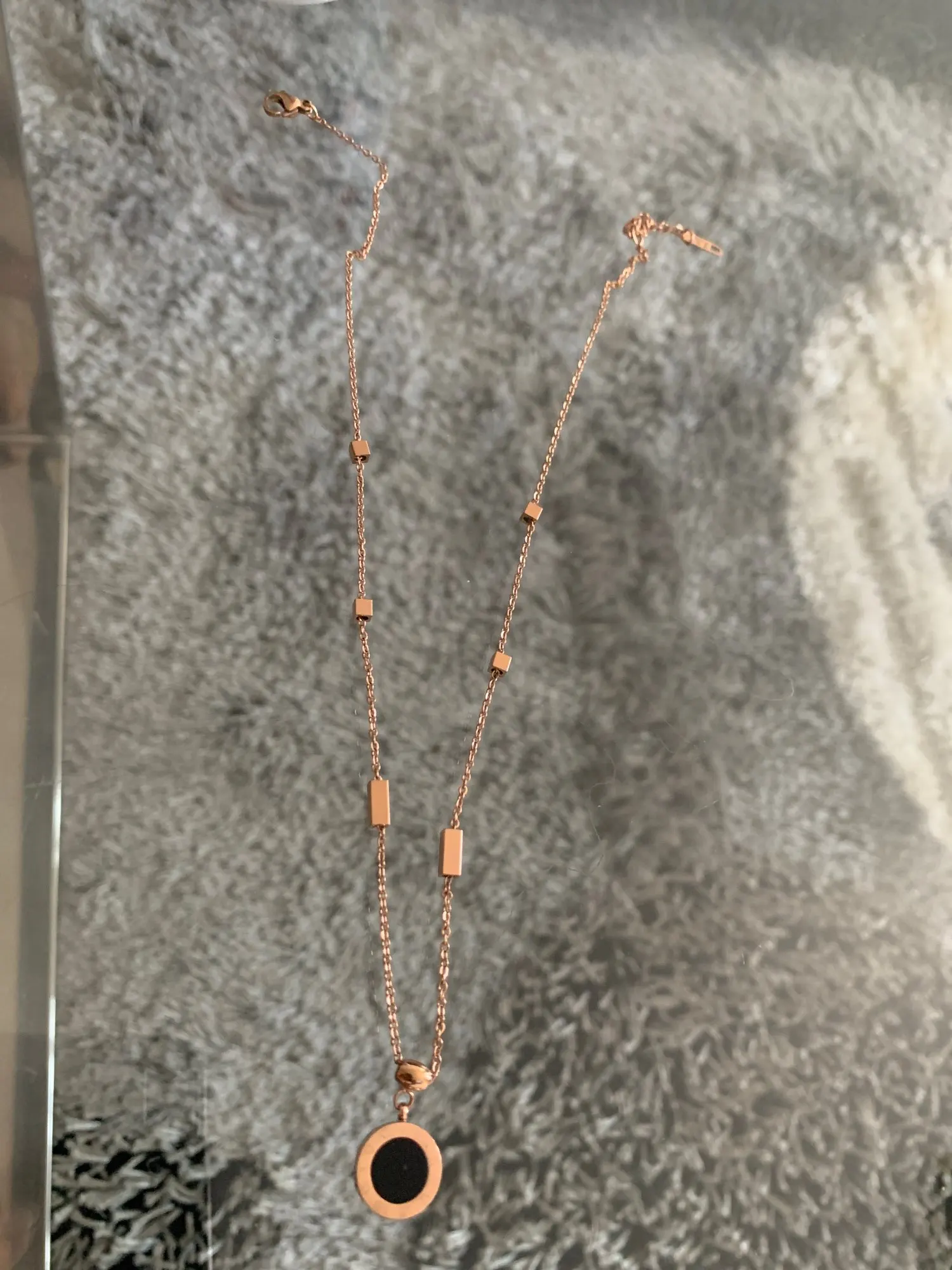 Очень красивое ожерелье. С розовым золотом и белым кулоном. Chcialam ожерелье из желтого золота с черным агентом, это Tez очень мило, и я рад