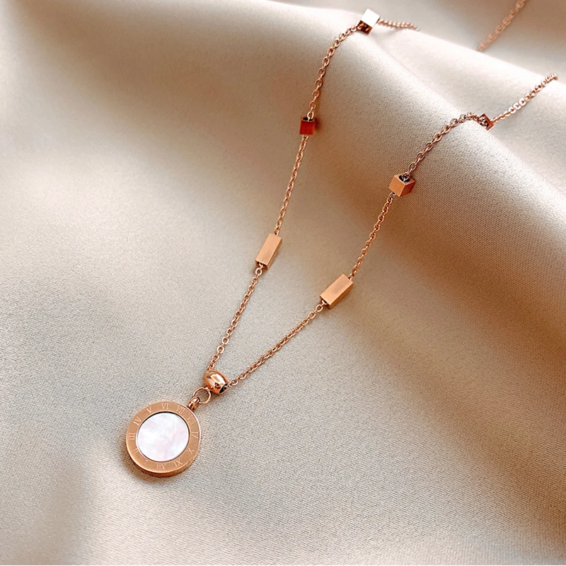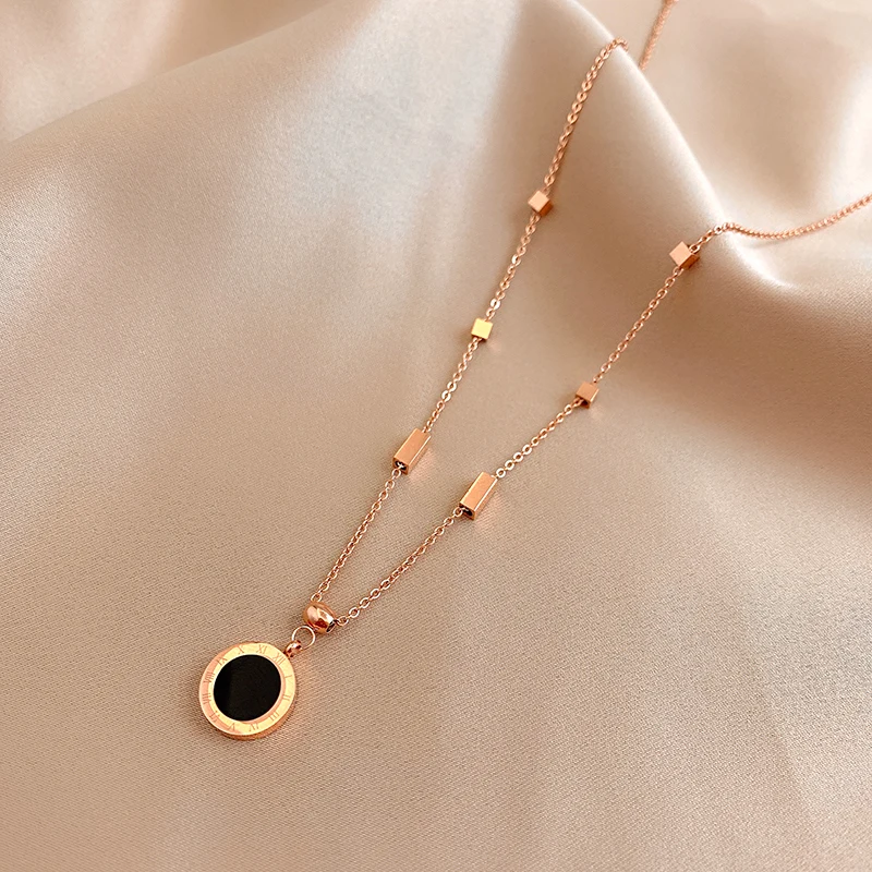 Классическая римская цепочка из титановой стали черно-белая ожерелье с подвеской в виде диска модное корейское ювелирное изделие необычная Женская цепочка до ключицы