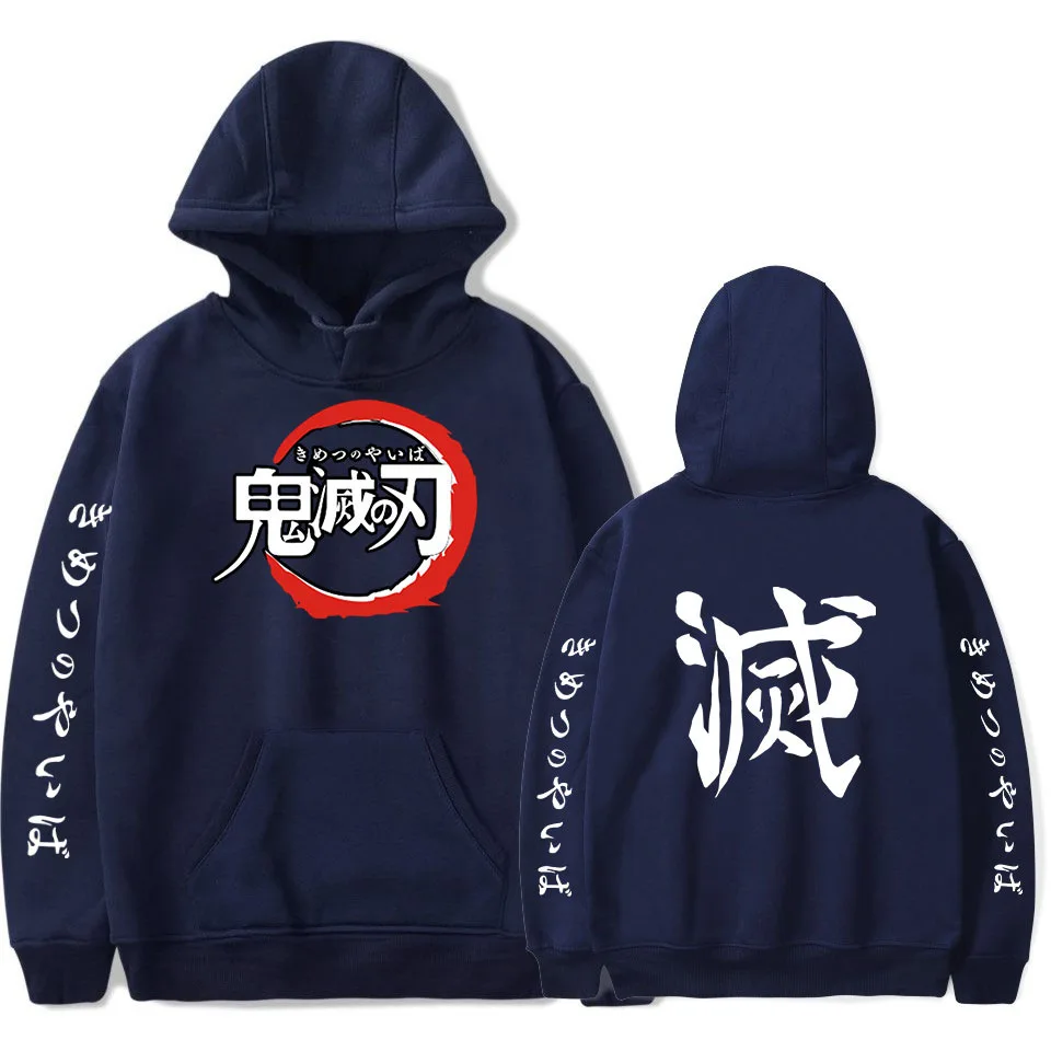 Толстовка Мужскаяженская с принтом Demon Slayer, Свитшот оверсайз с капюшоном, уличная одежда Kimetsu No Yaiba, повседневная Полная мультяшная с аниме