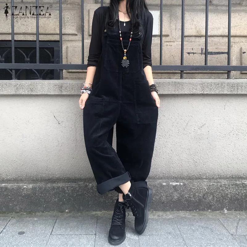 Вельветовые подтяжки ZANZEA 2022, модные женские однотонные повседневные мешковатые комбинезоны, винтажные комбинезоны, прямые женские макси-комбинезоны