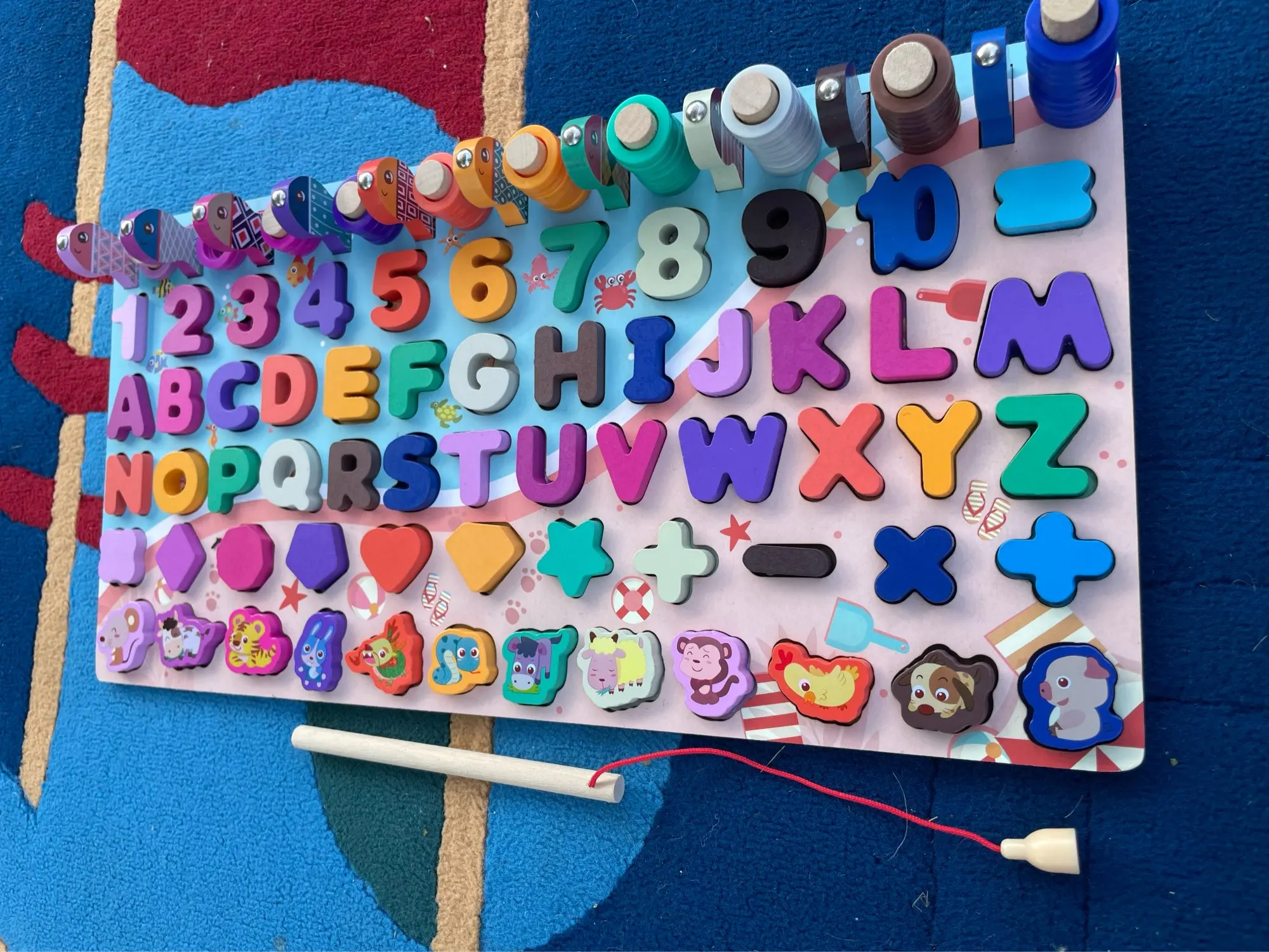 Игрушка супер. Все буковки, знаки выполнены аккуратно. Единственное перед фото не нашёлся столбик для кружочков, может и сами потеряли во время игры. А может и не было. В любом случае, продавца рекомендую. Отличный подарок ребёнку.